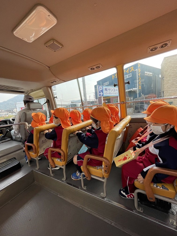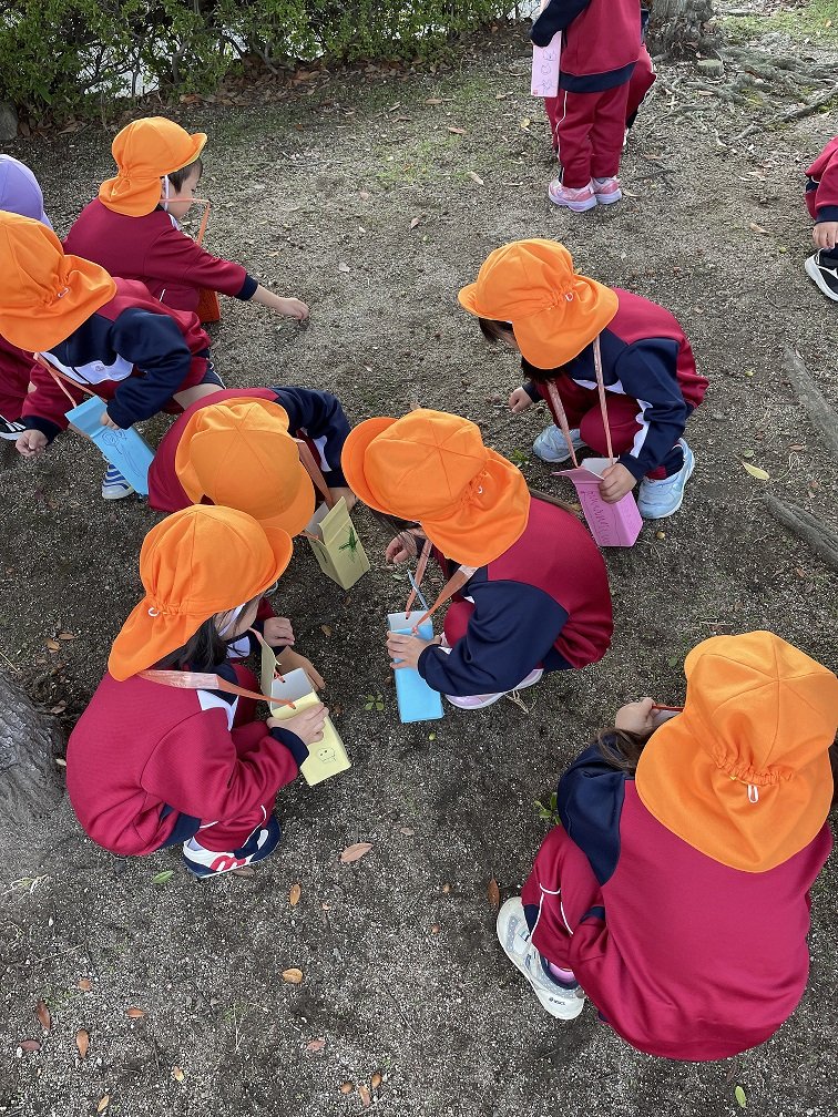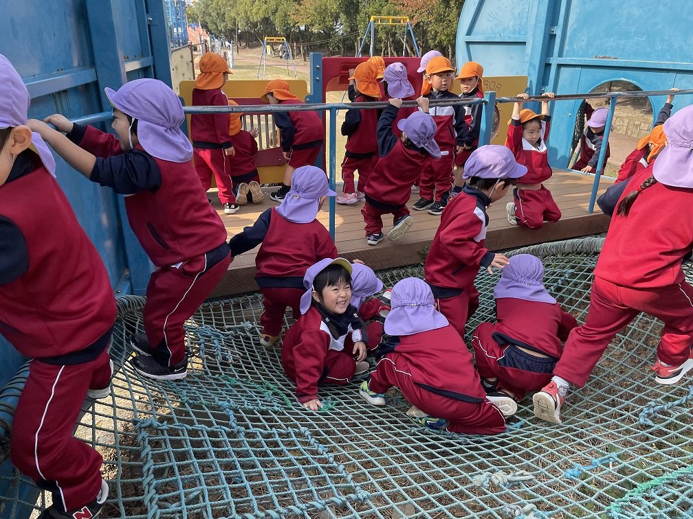 園外保育(年少②) 2021年11月16日(火) 今日は、年少児クラスの子どもたちが、園バスに乗って臨海公園へ遊びに行ってきました。 お天気も良く、元気いっぱい先生やお友達と一緒に、ドングリを集めたり、遊具で遊んだりしましたよ。