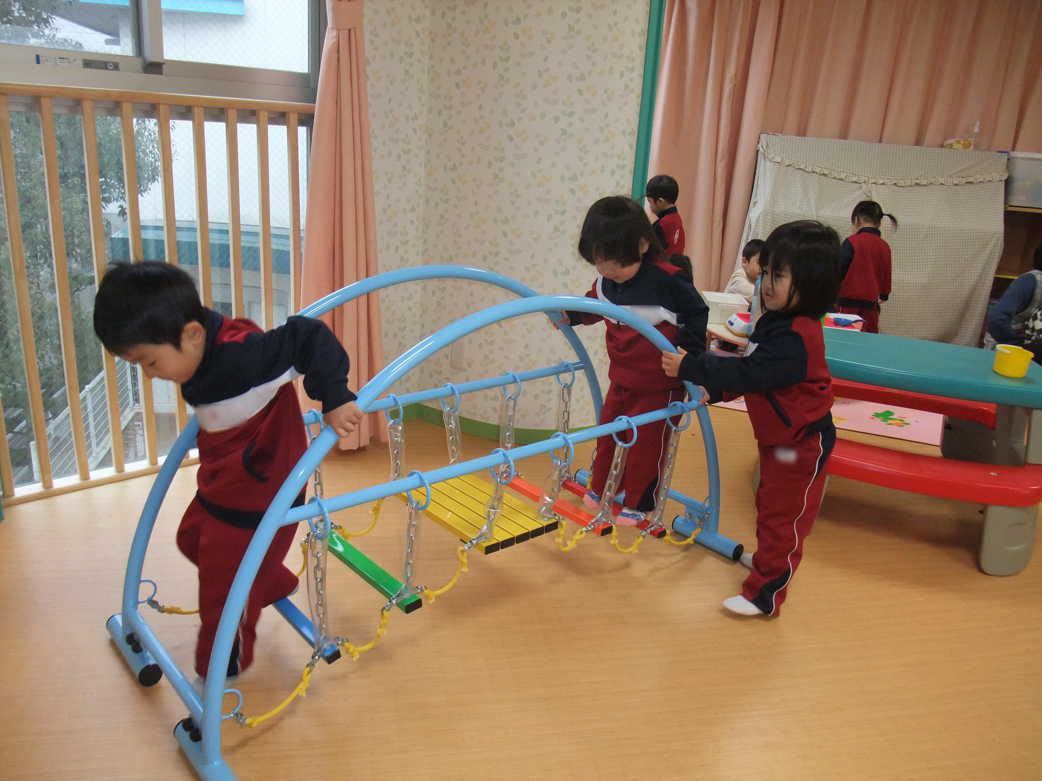お部屋でも元気いっぱいです 2023年01月27日(金) 北風小僧のかんたろうが、ヒュルルルンと今年も園庭にやってきましたよ。 今日は雨も降っているので、お外に行けない子ども達。 お部屋で元気いっぱい体を動かして遊んでいます。