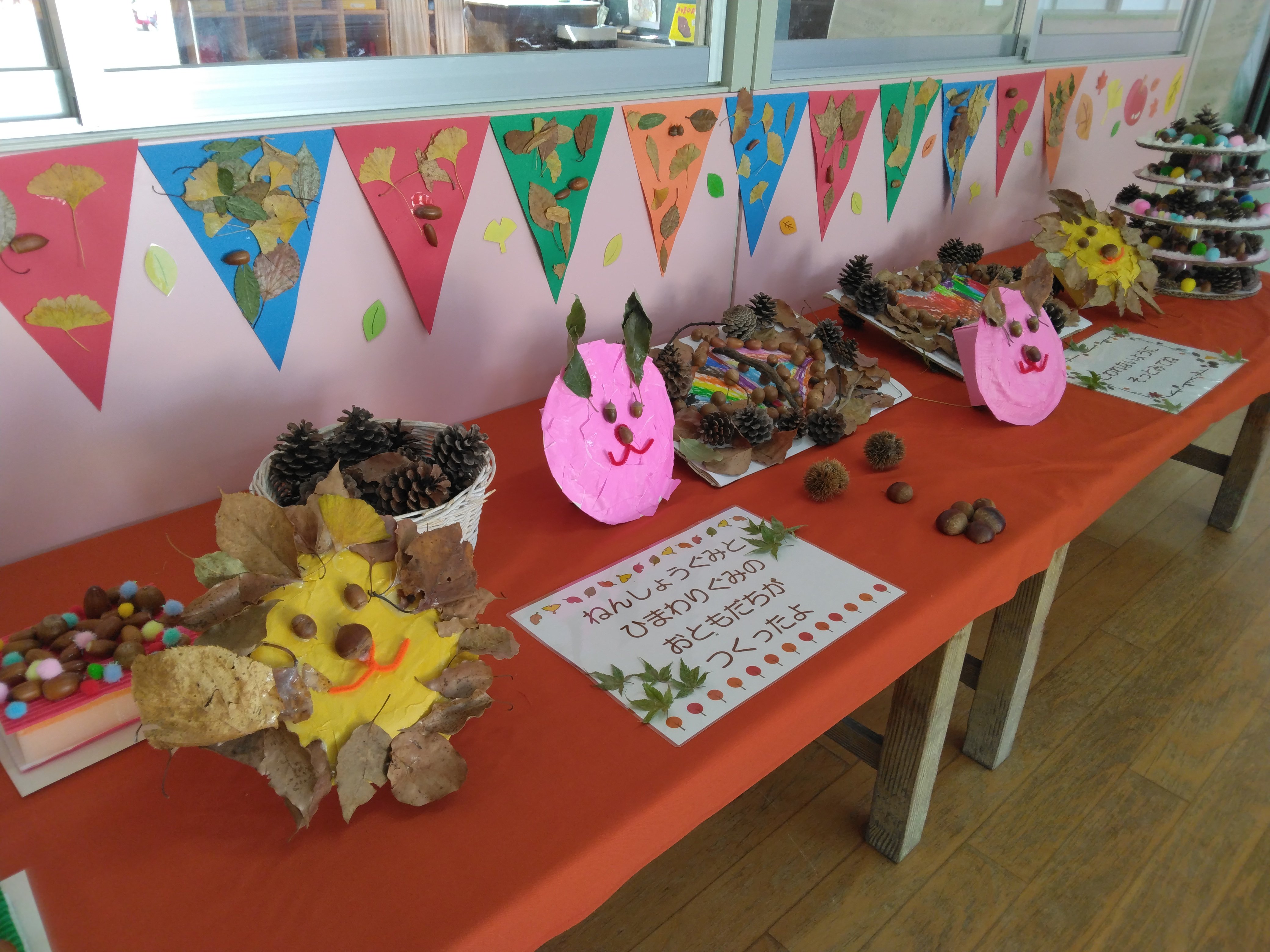 園内には、秋のみ制作がたくさん飾られていますよ。