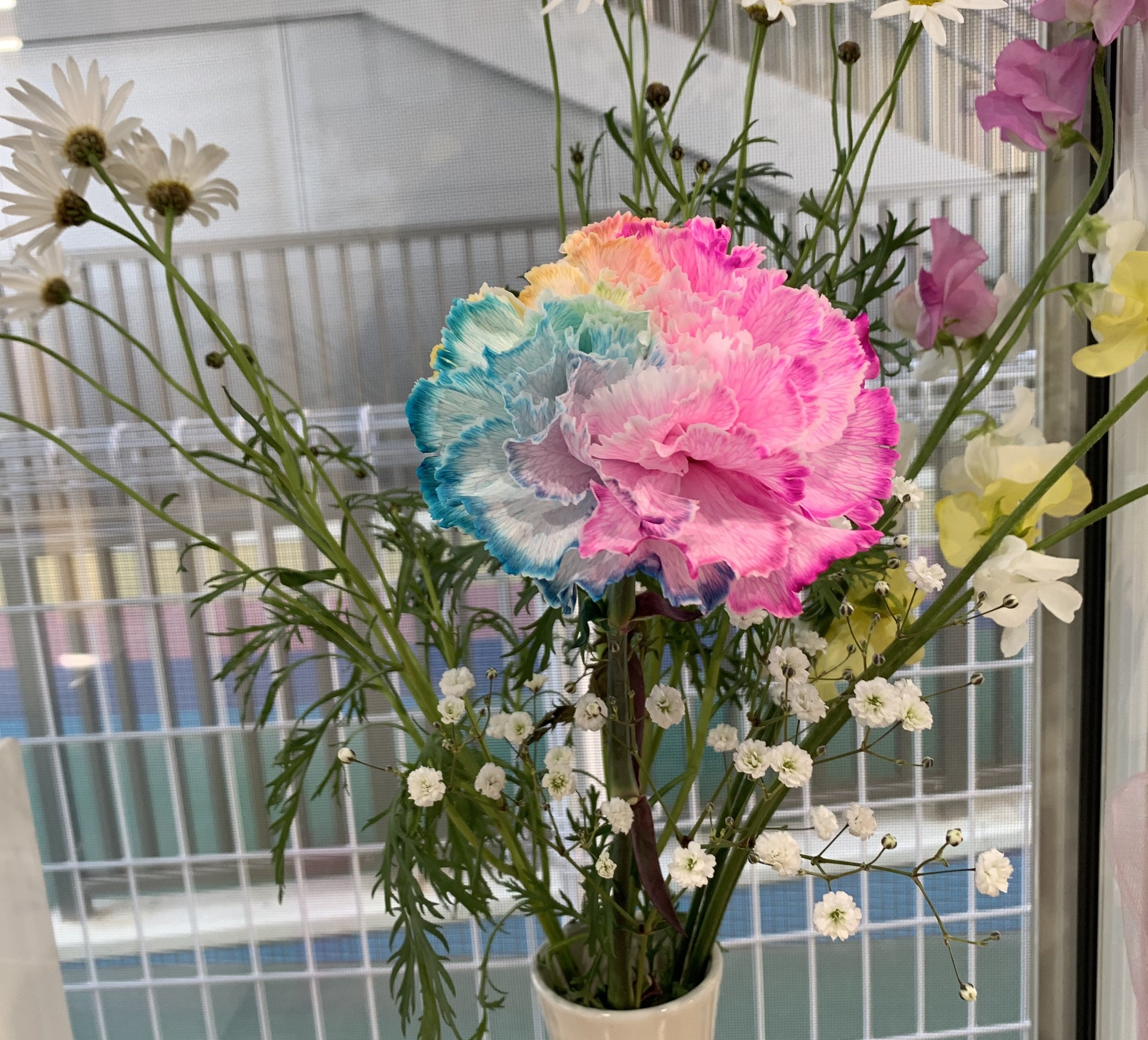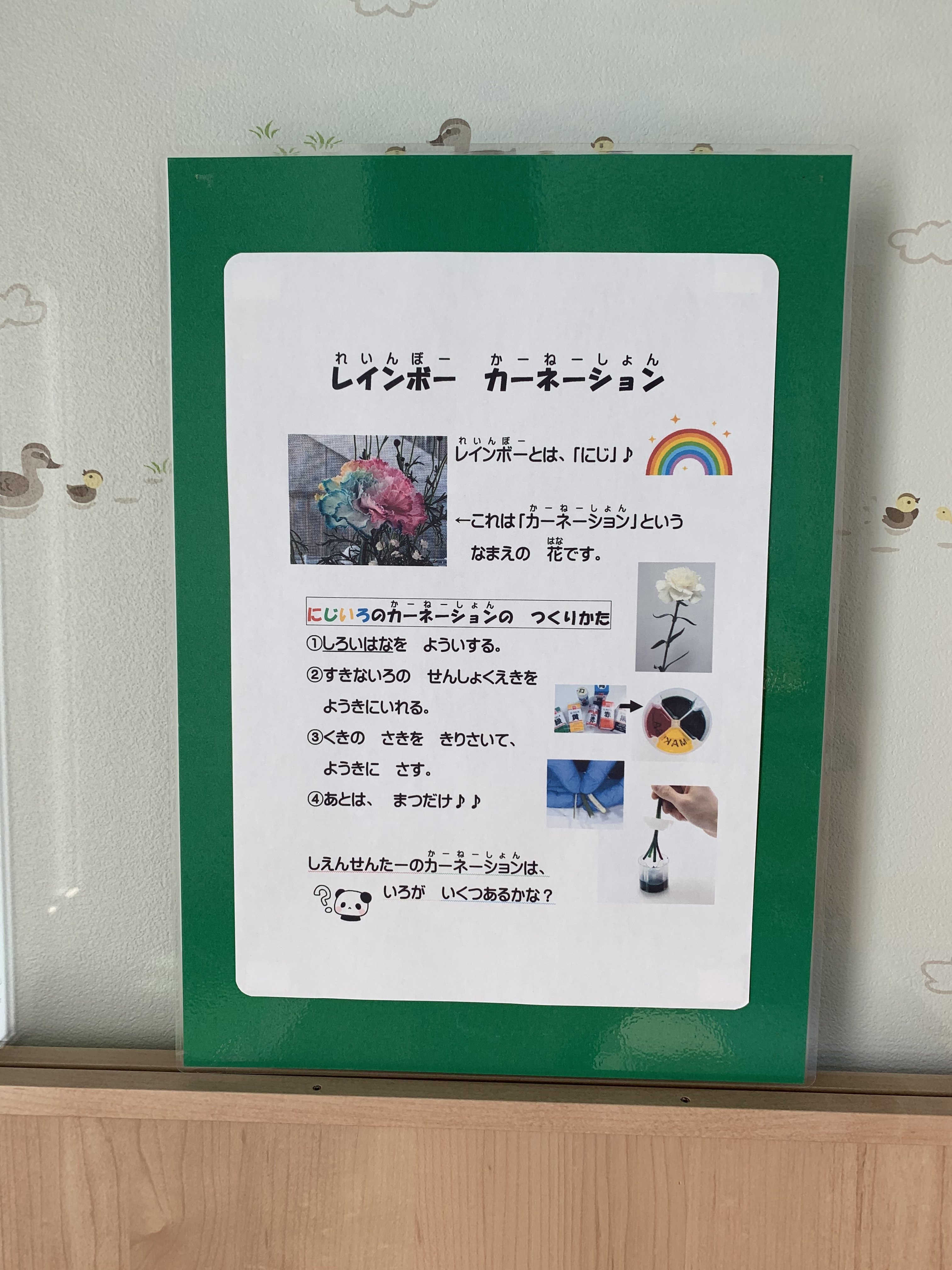 支援センター玄関に不思議なお花がやってきました。 子どもたちは興味津々! 入り口で紹介しているクイズにも挑戦してみてくださいね。