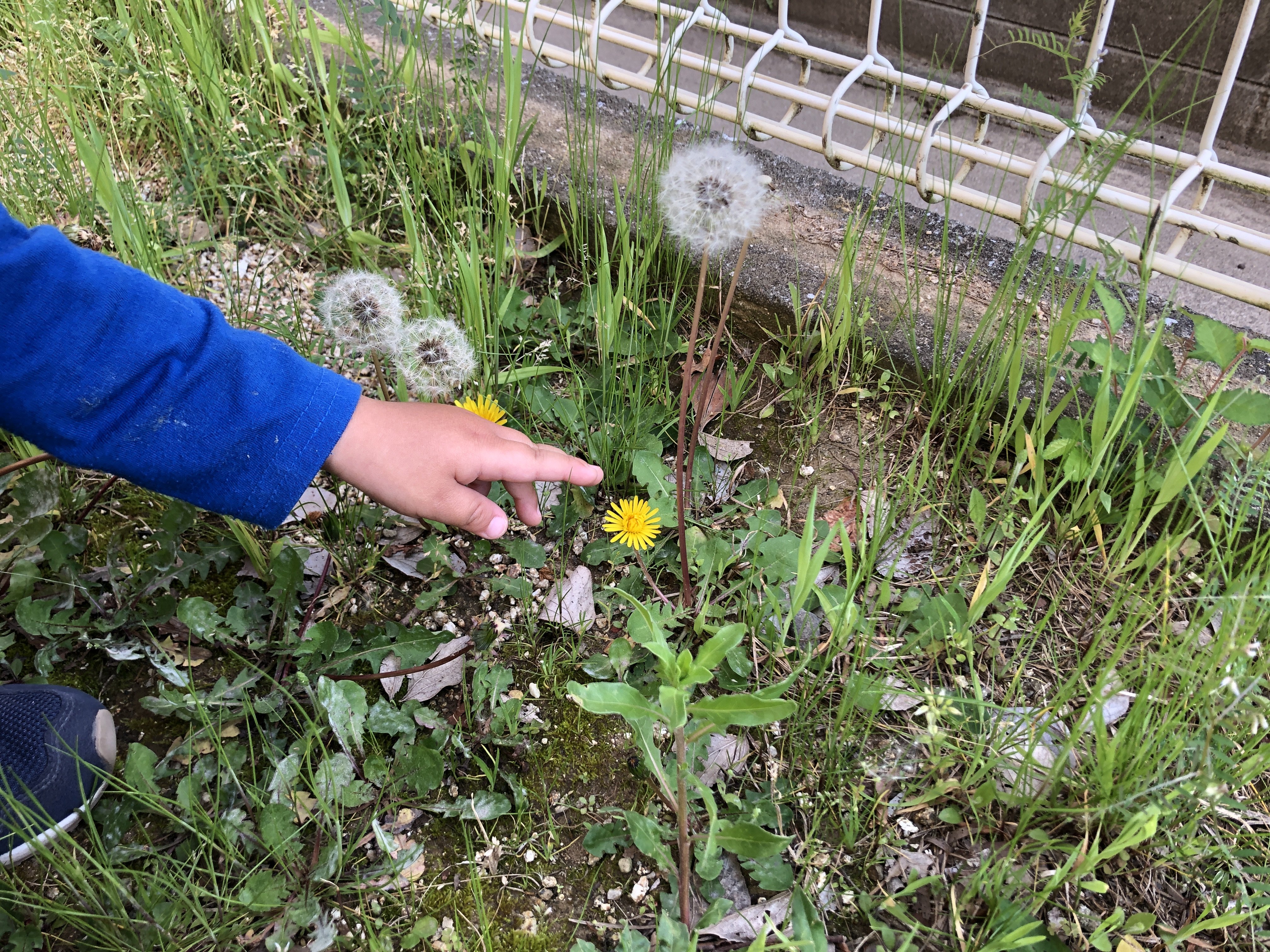 好きな遊びの時間、園庭で春の自然をたくさん見つけました。