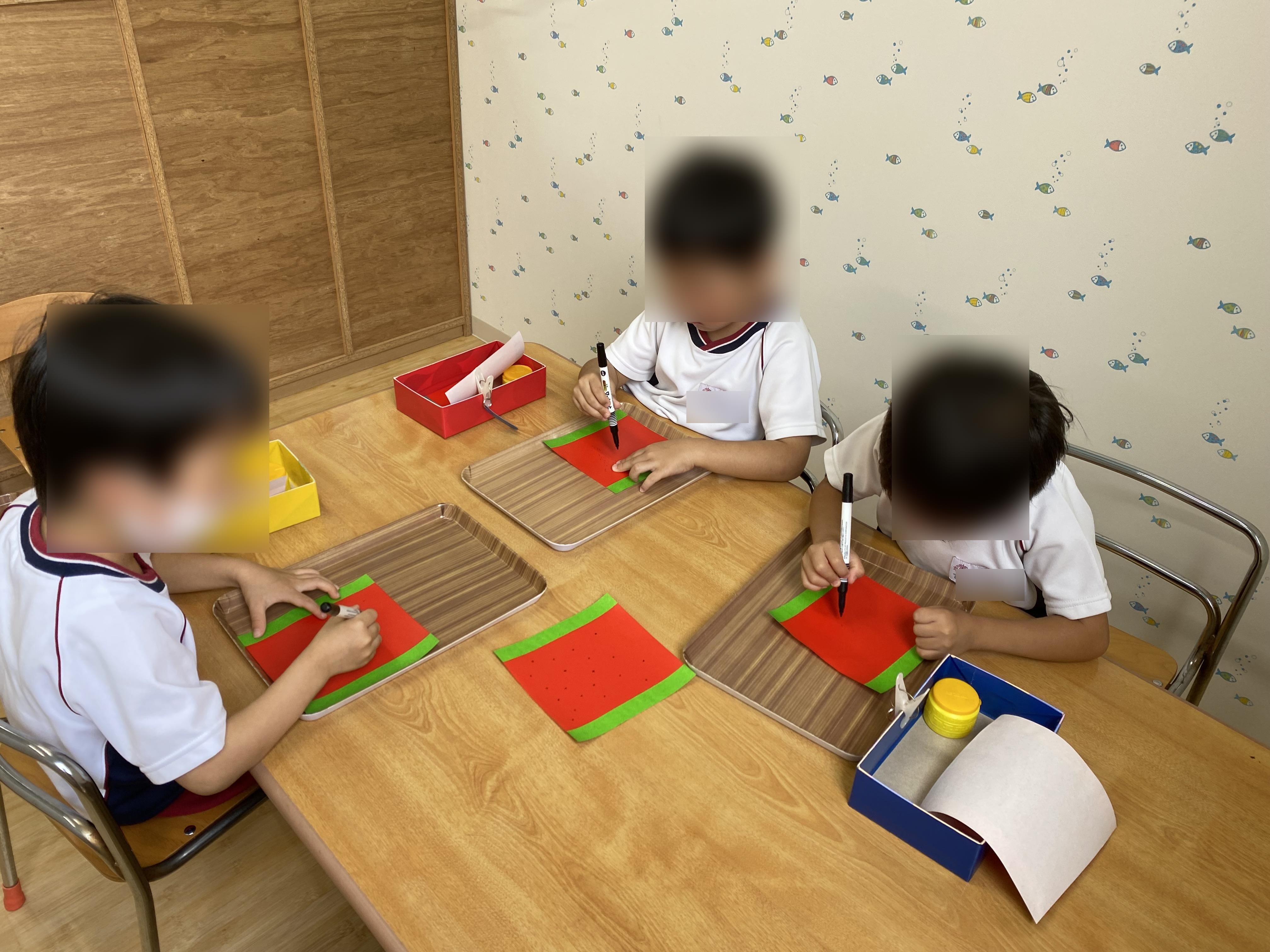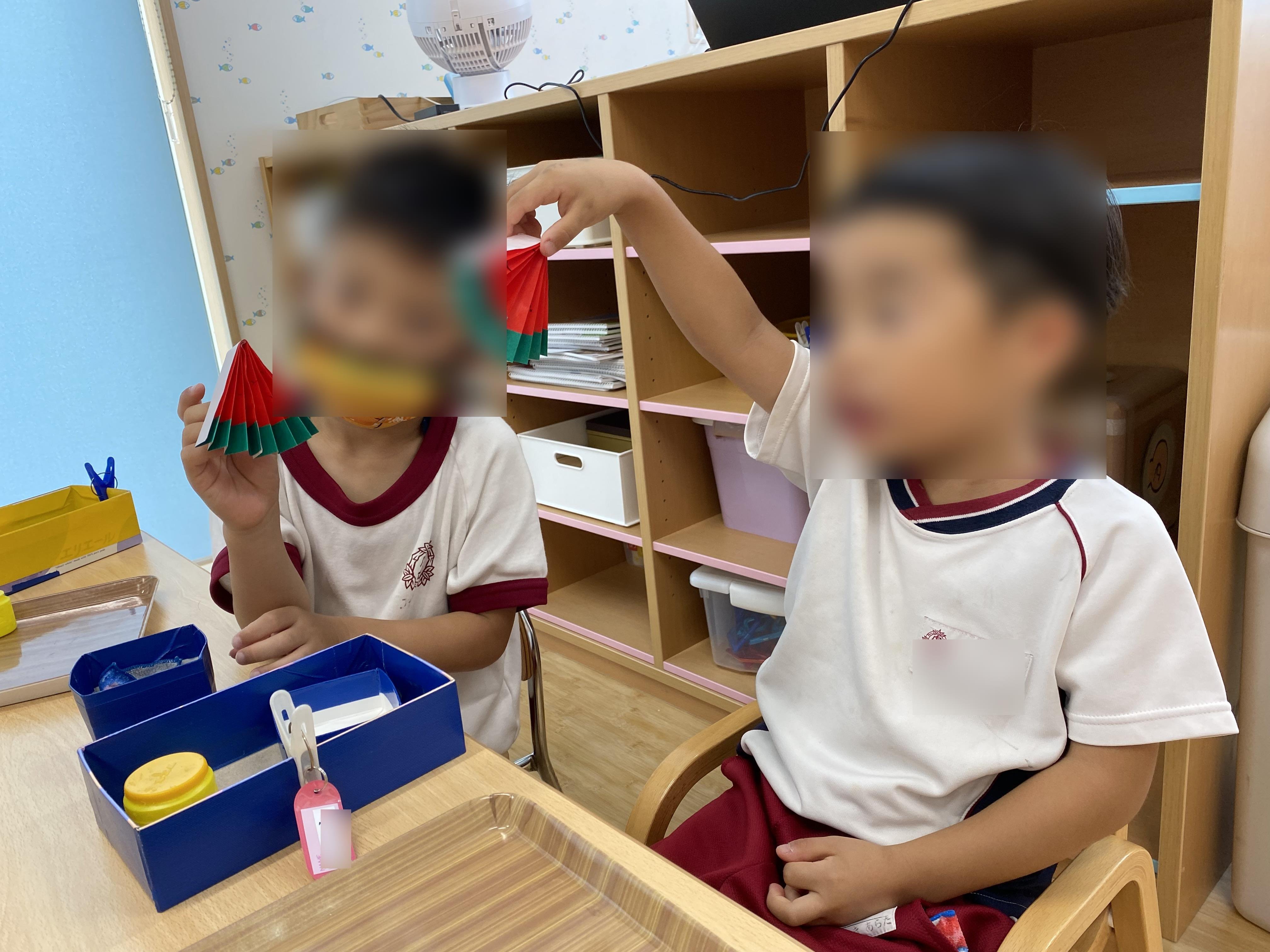 夏のおいしい果物を作りました。 じゃばら折りに挑戦です。