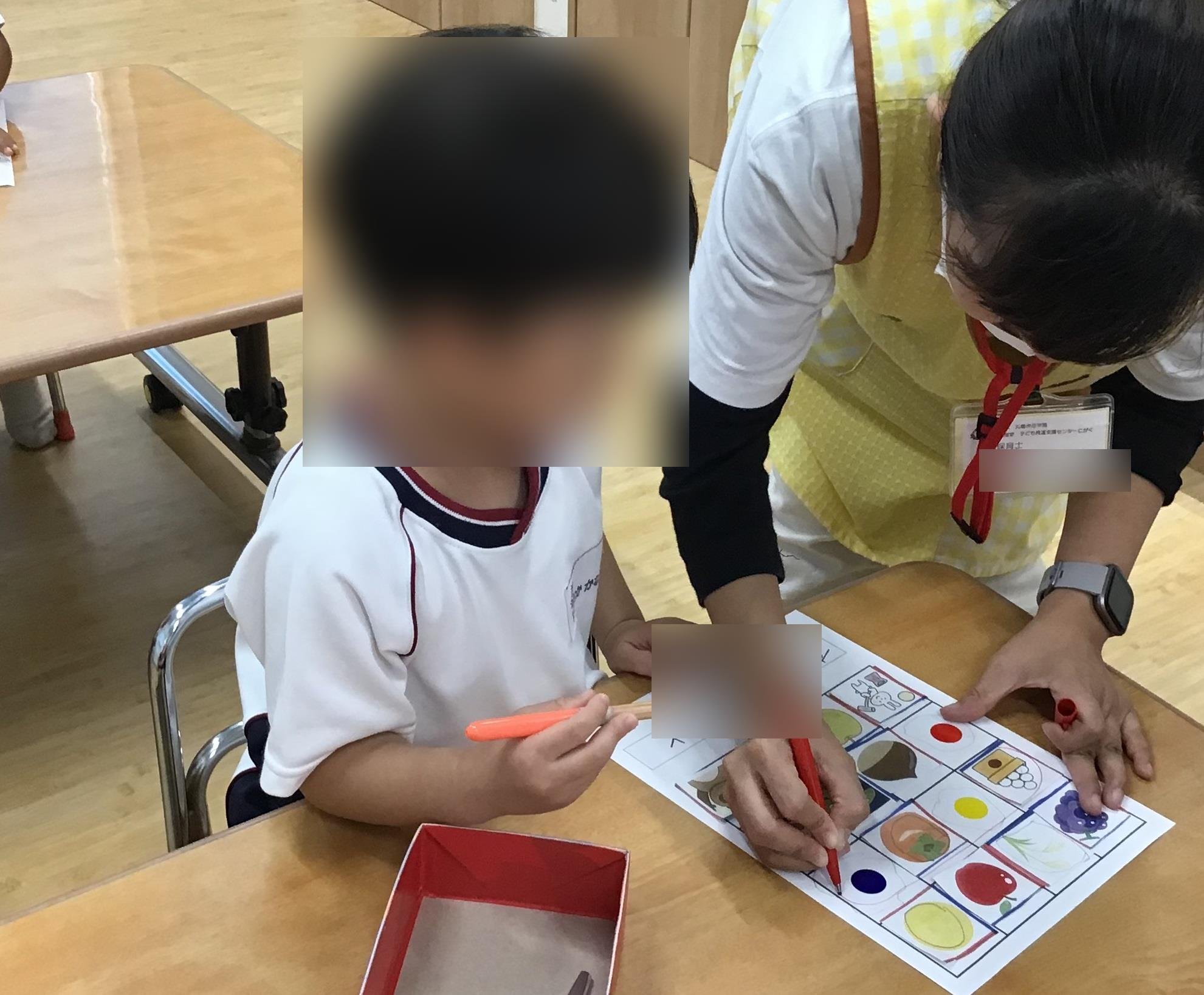 ぽんぽこビンゴ! 2021年09月17日(金) 9月中半は「証城寺のたぬきばやし」がテーマです。 ストーリに合わせて歌ったり、歌のイラストに出てくる素材を使ってビンゴゲームを楽しんでいます。 ビンゴ台紙作りには何がいるのかな? なかなかでないなあ~ ビンゴ!