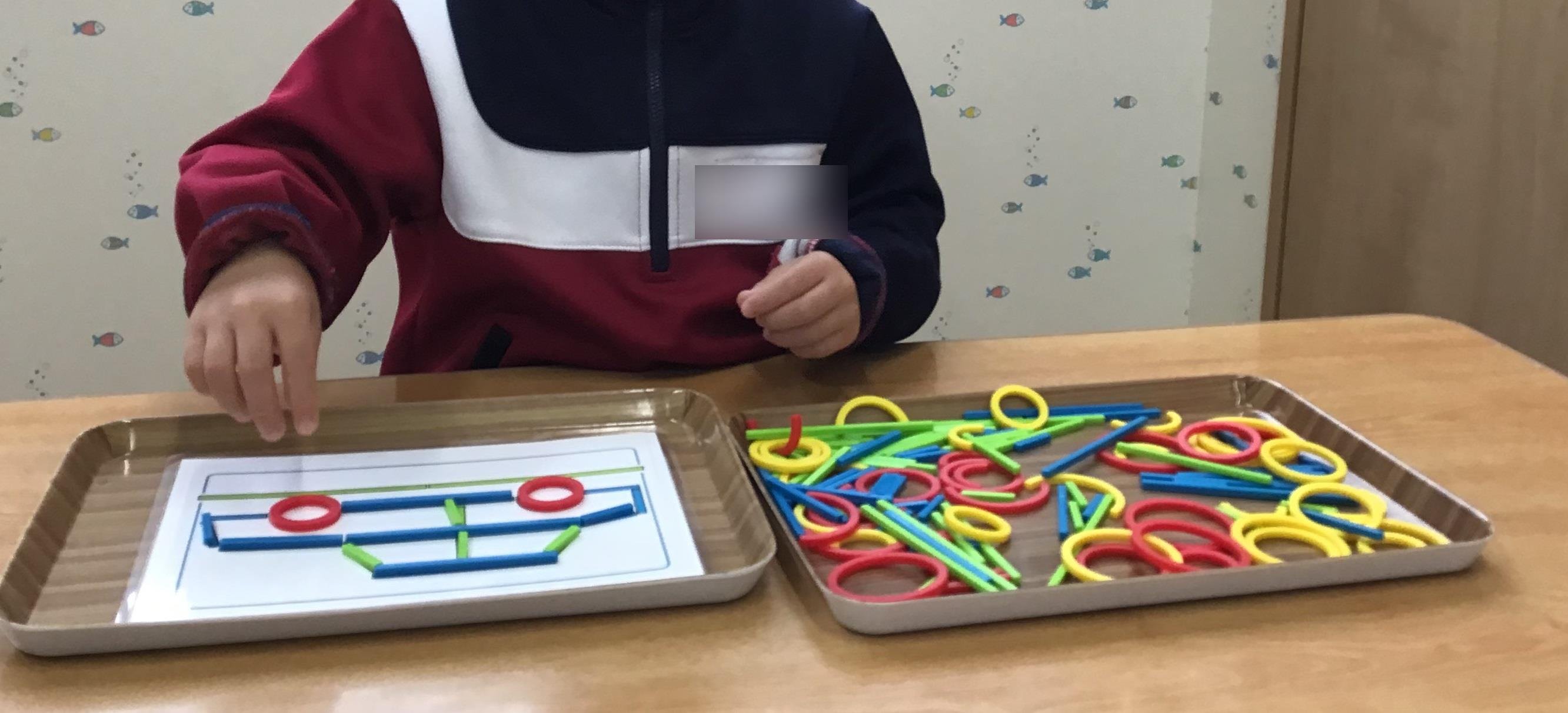 たくさんのピースを組み合わせて、図の絵を完成させます。 初段階は、絵の上に同じ形を見つけて置いていくマッチング遊びです。