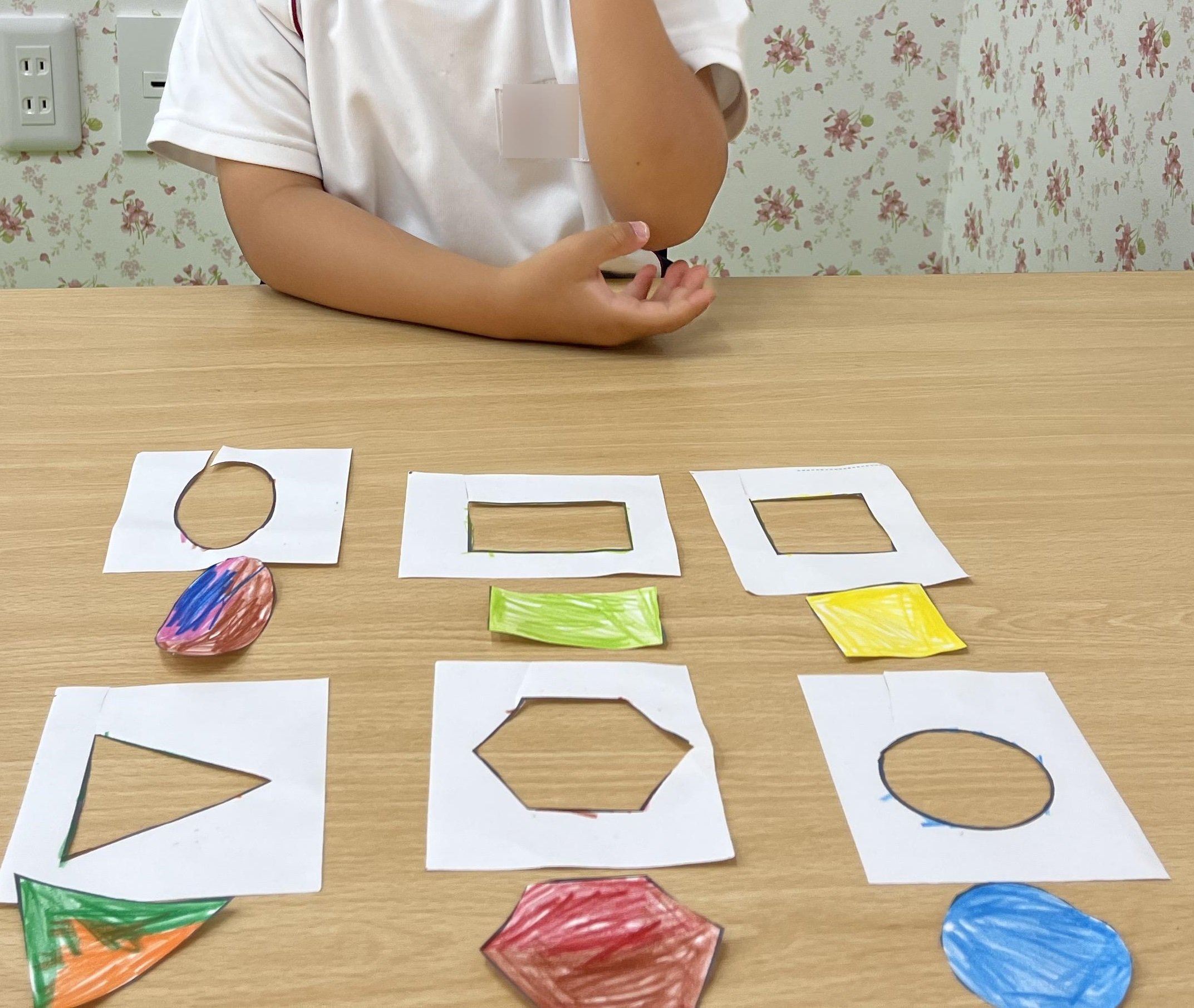 はさみが上手に使えるようになりました。 好きな色を塗って、切り抜く遊びを楽しんでいます。