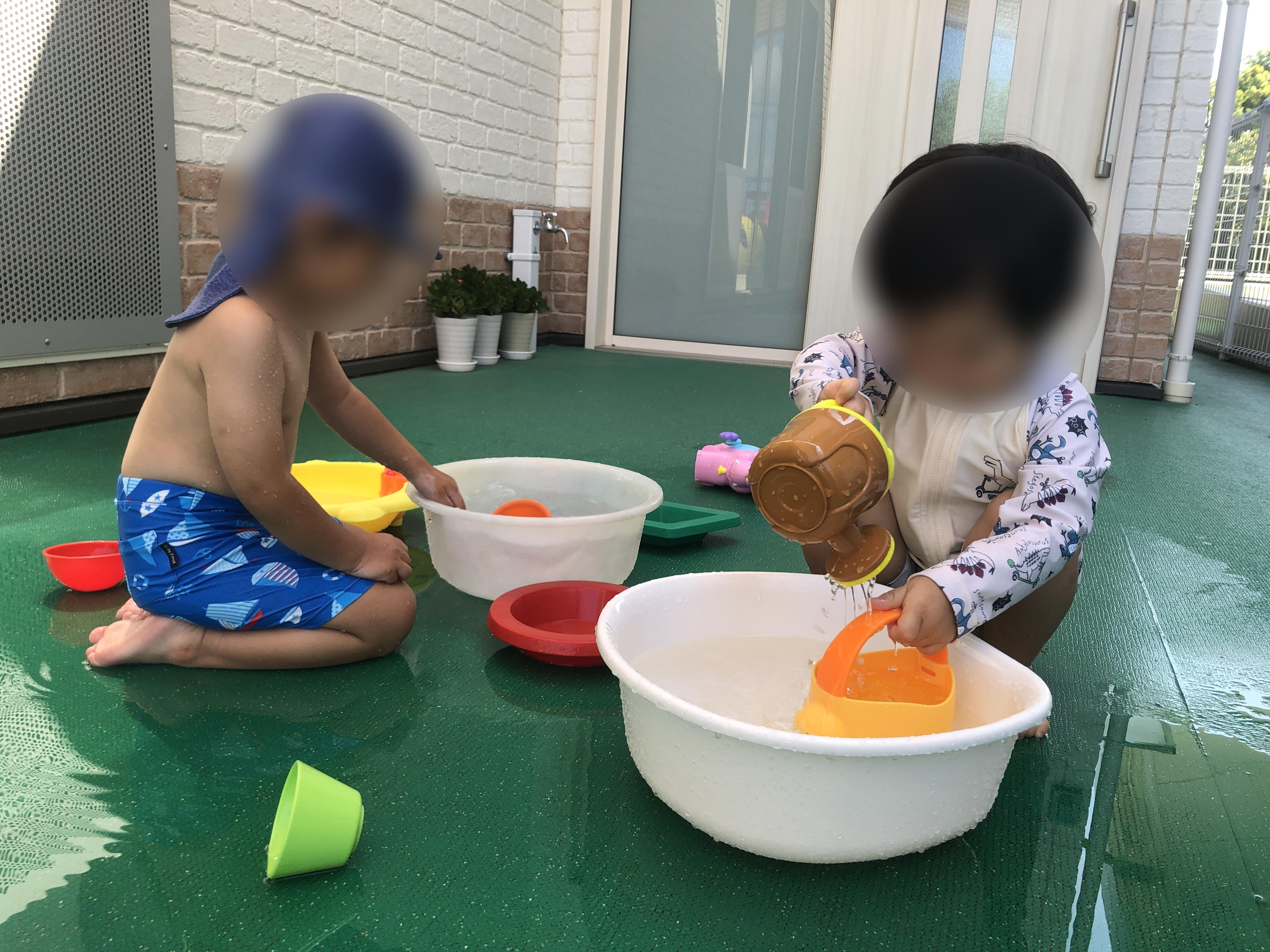 今日は未就園のお友達がテラスで水遊びをしました。 今年も感染対策に気をつけながら、夏の遊びを楽しみたいと思います。
