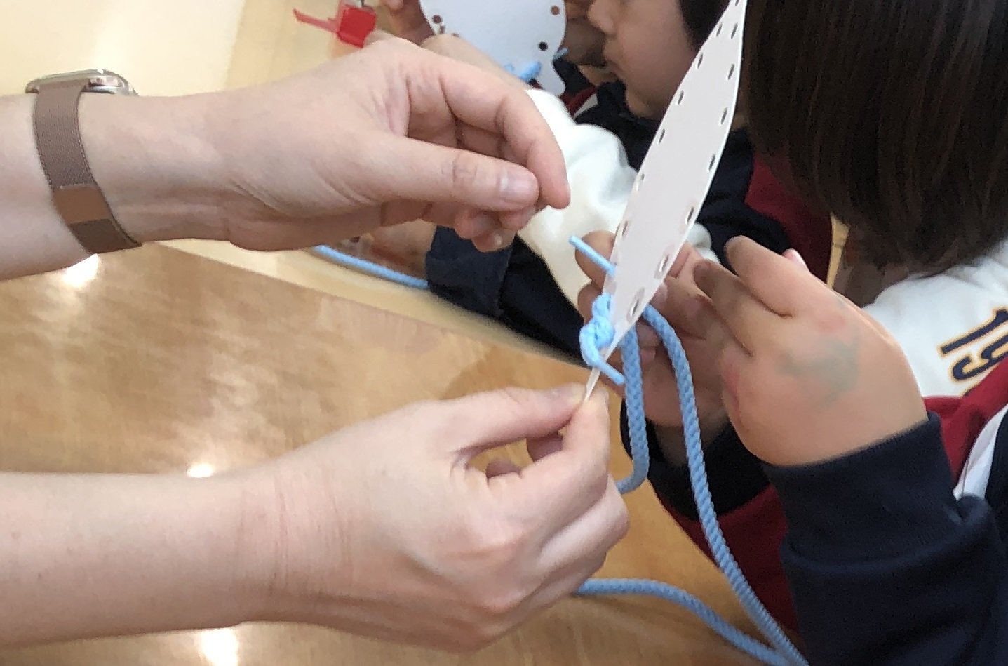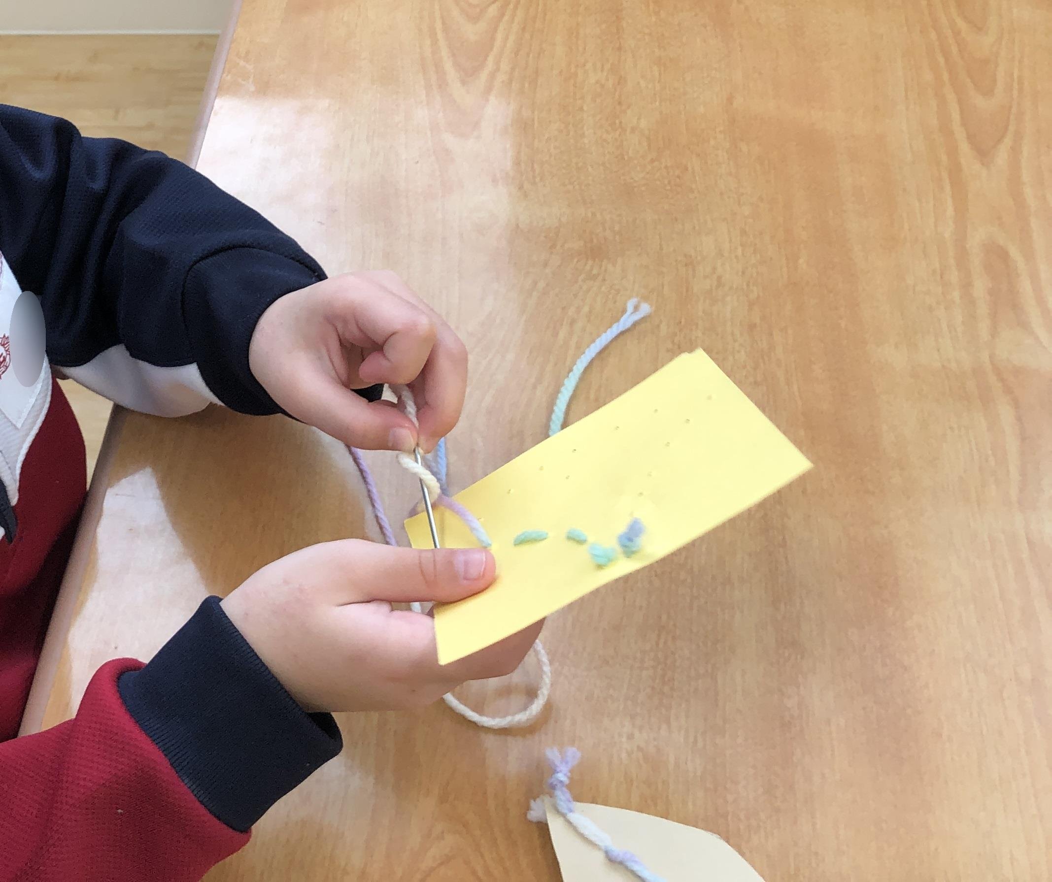 まずはひも通しで練習して・・・