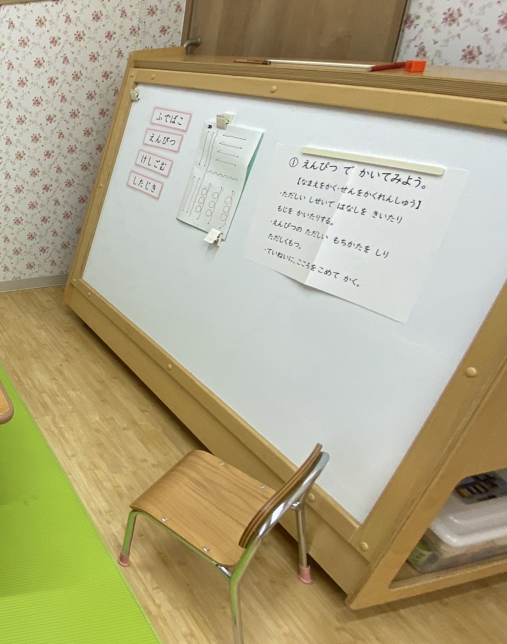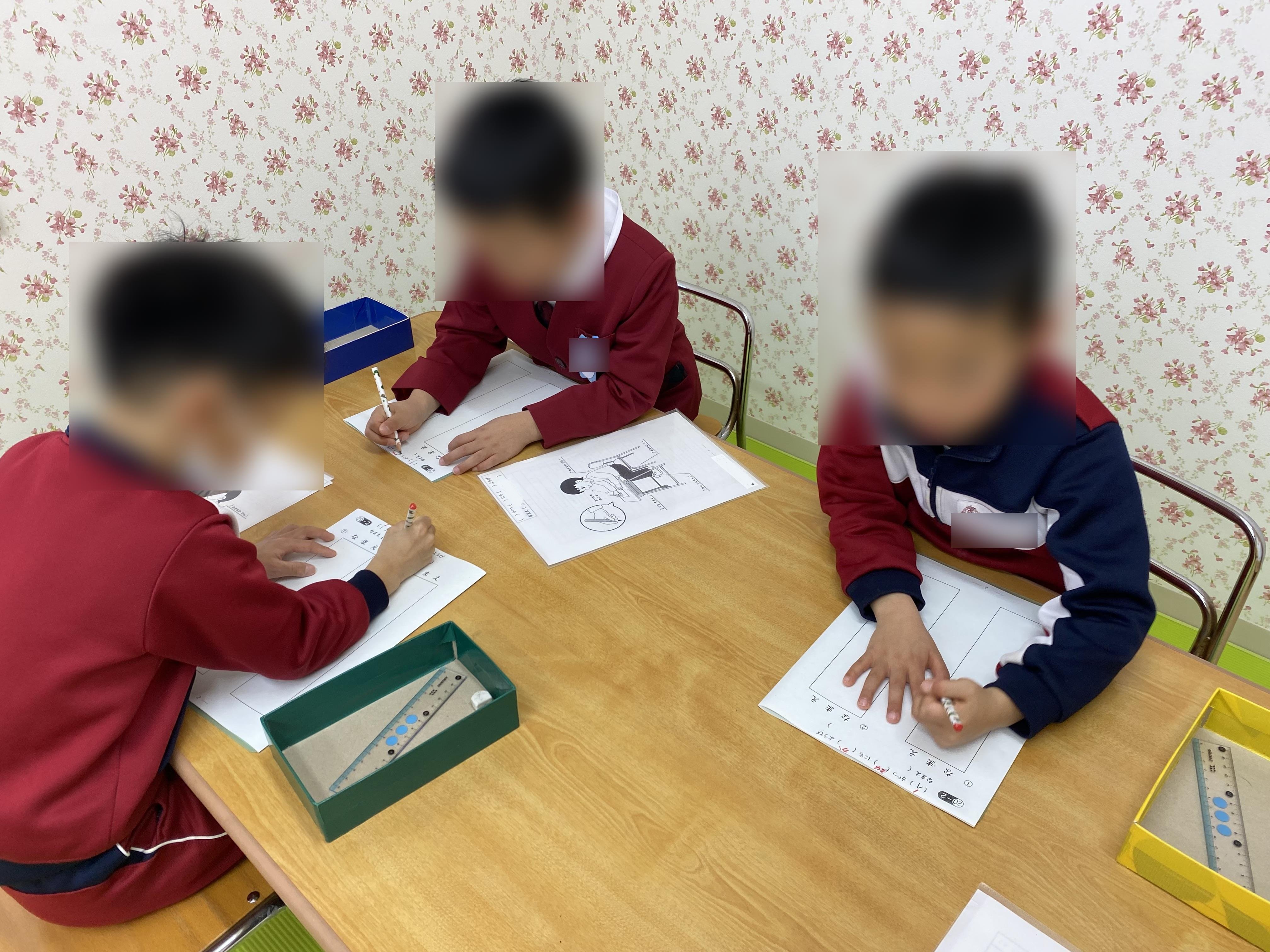 5歳児のお友達が、机に向かってお勉強。