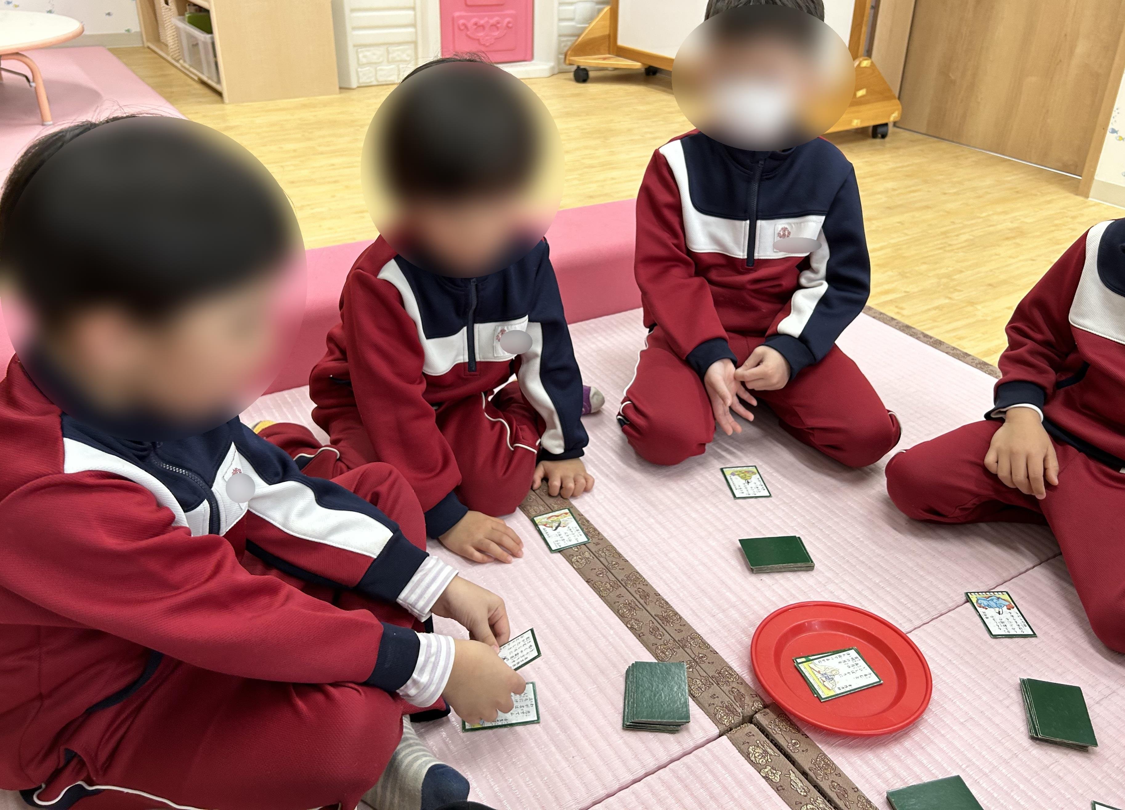 百人一首のかるたを使って坊主めくりをしました。 何の札が出るのか「運だめし」の部分が大きいので、最後までわくわくどきどき・・・。