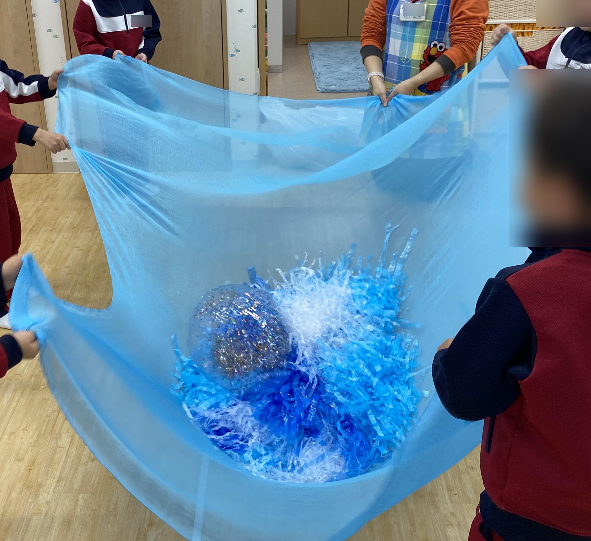 毎日、寒い日が続いていますね。 今月の前半は、ボールやポンポンを雪に見立てて、リトミックやボール遊びをします。
