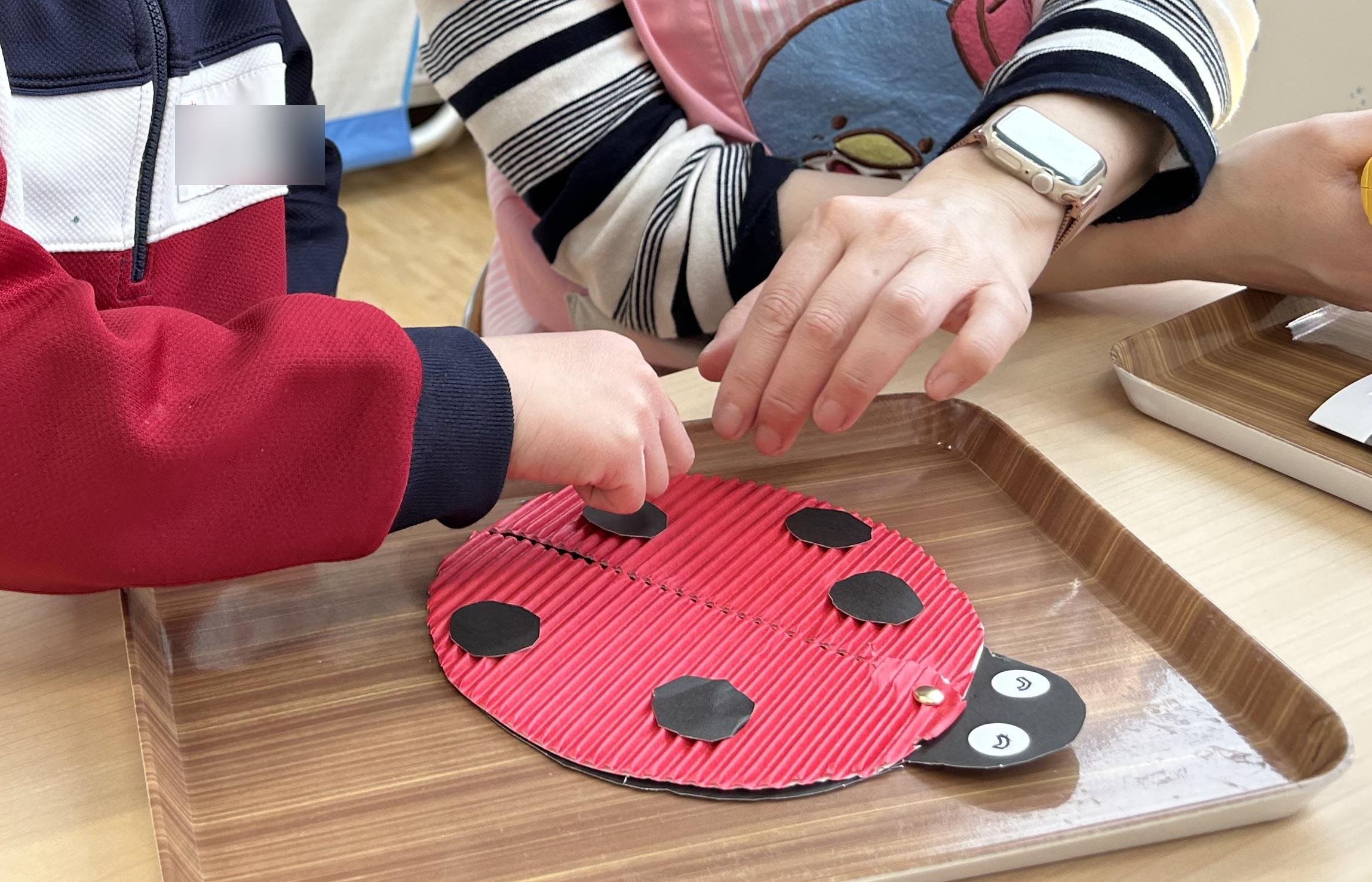 進級児は、てんとう虫。 羽の部分が開く仕組みになっています。