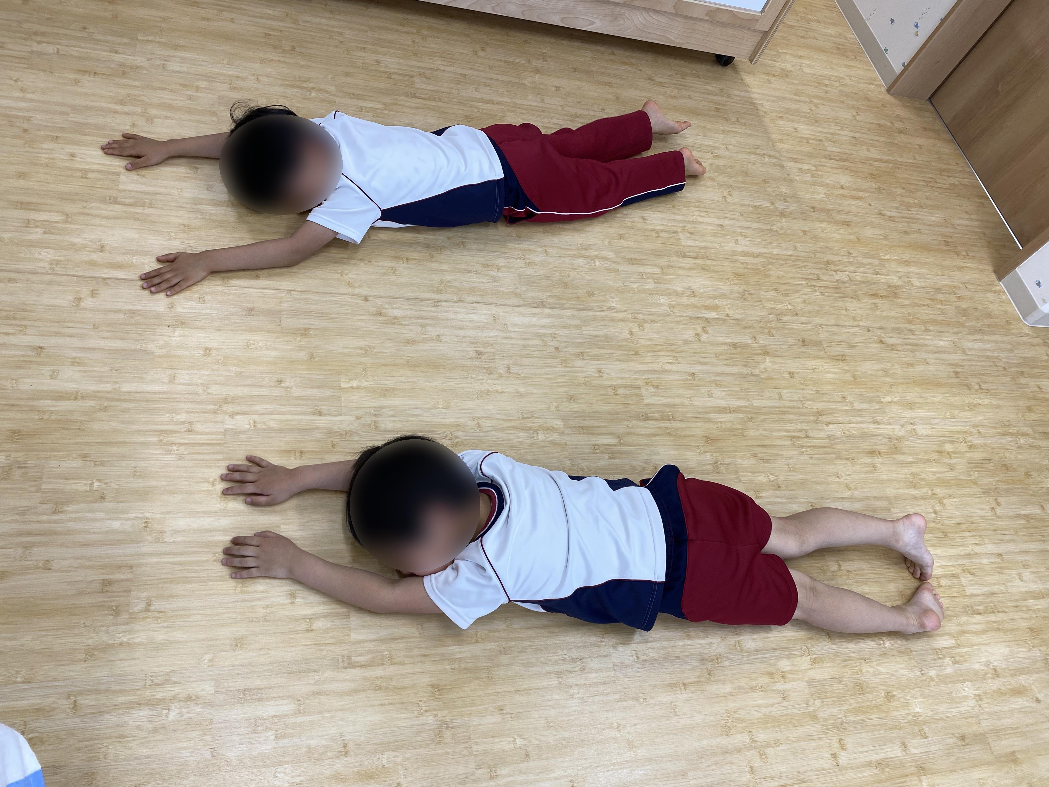どうぶつ変身! 2023年05月09日(火) 音楽に合わせて、いろいろな動物への変身ごっこをしました。 子どもたちに人気なのは「両生類のハイハイ」。 上手に前進できるかな? 音楽に合わせてゆっくり~ ゆらゆら~ 今から羽をひろげるよ~