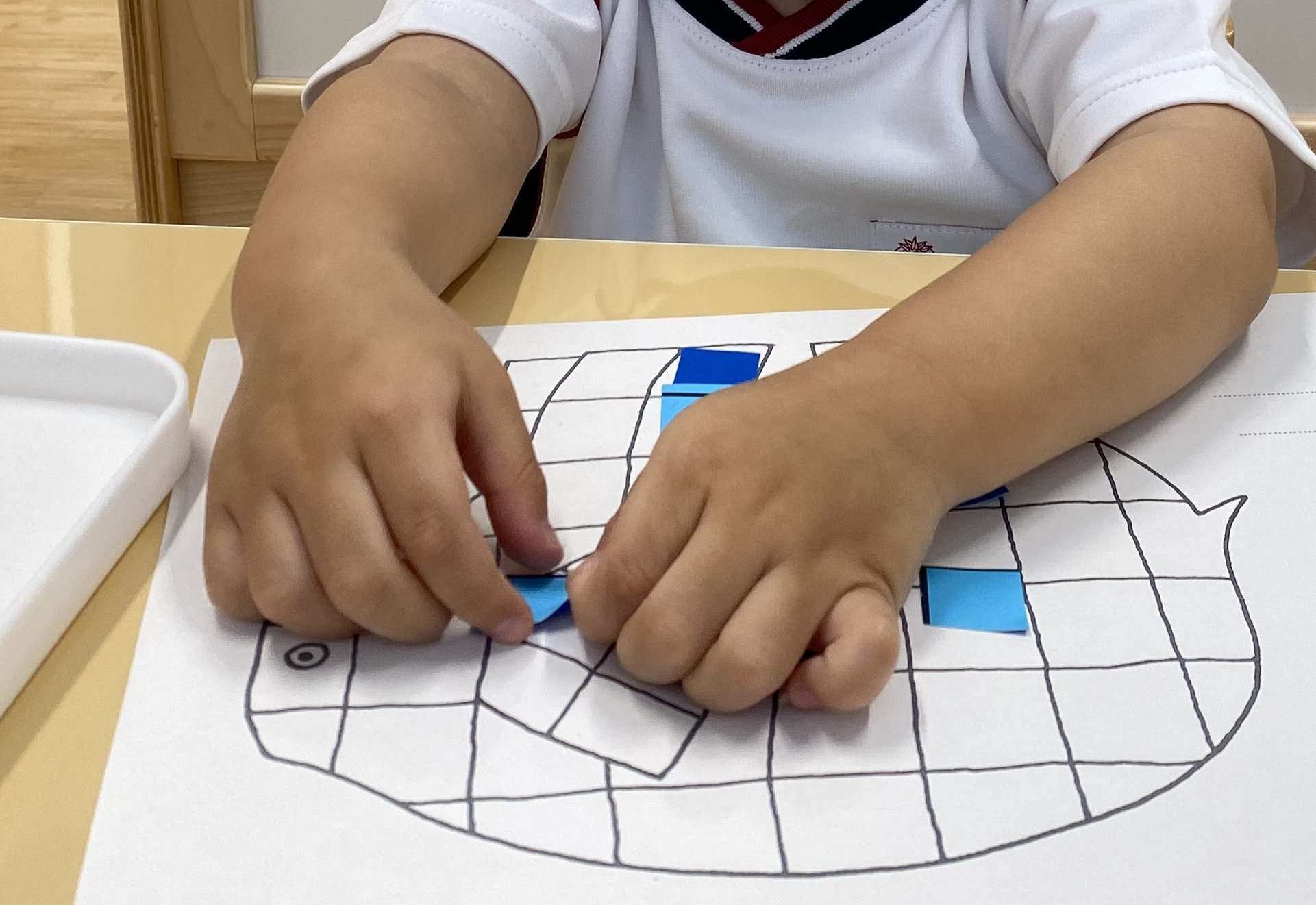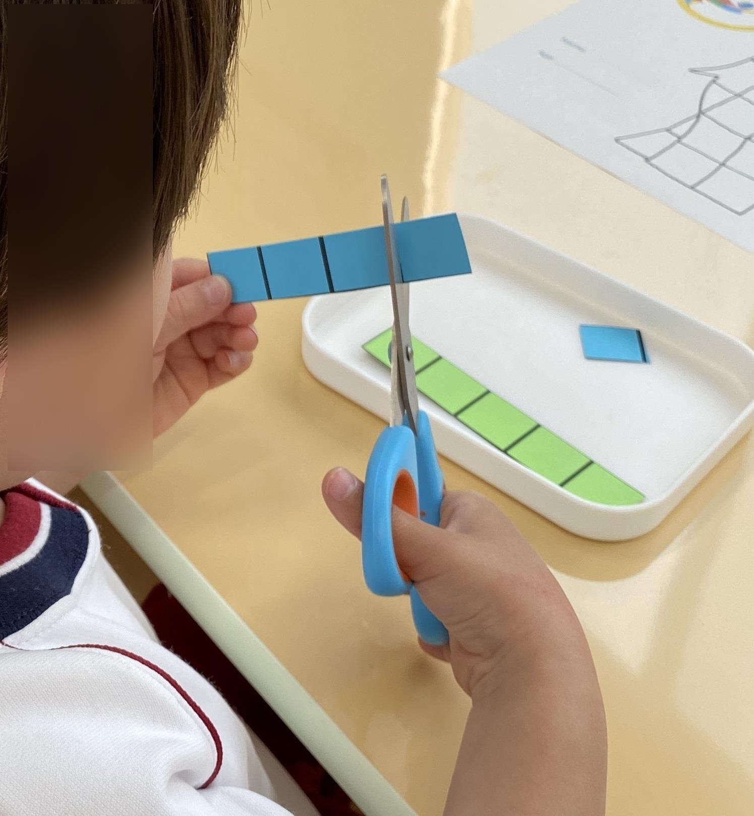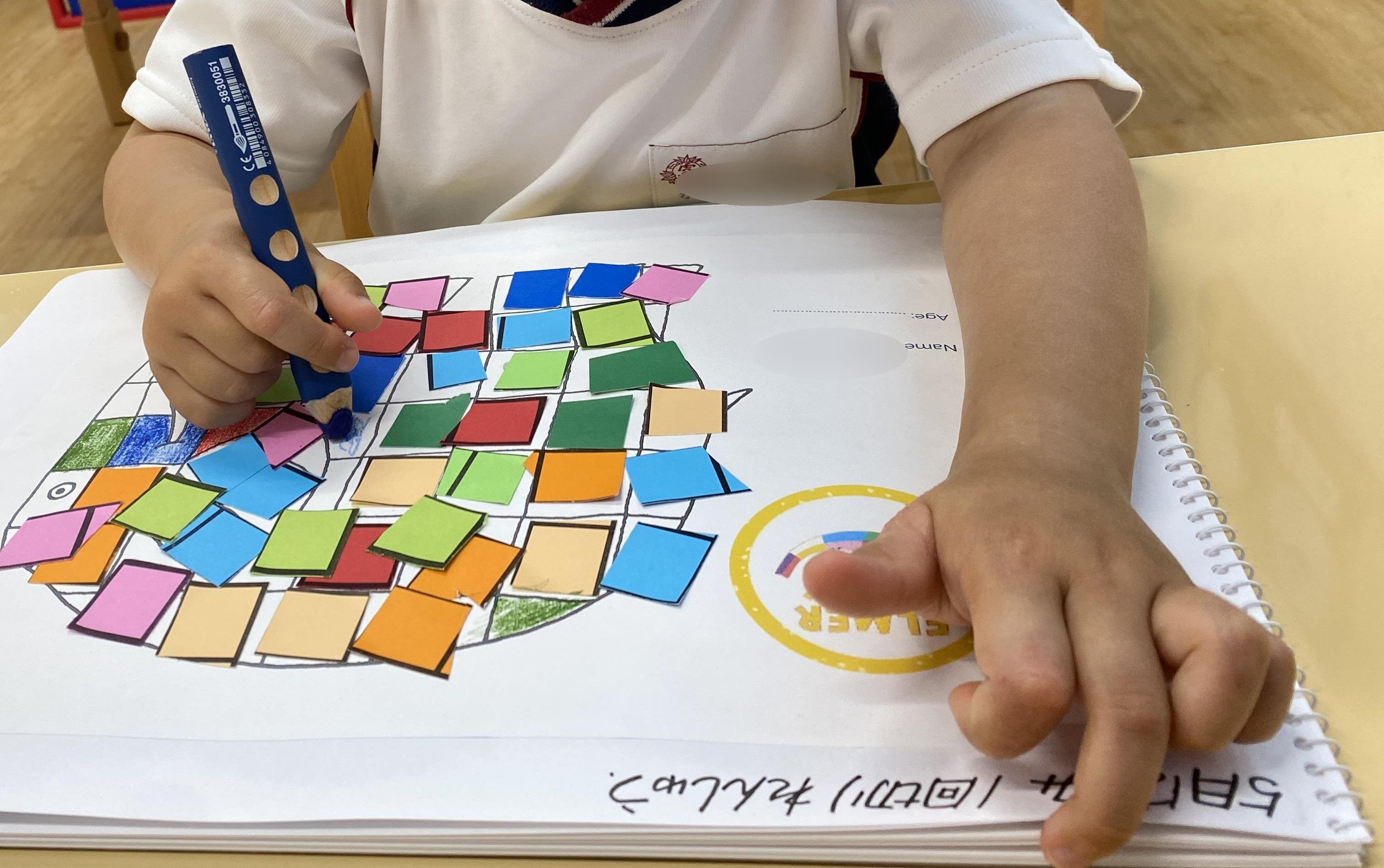 ぞうのエルマー 2023年05月19日(金) 子どもたちに大人気の絵本「ぞうのエルマー」を題材にした製作遊びです。 3歳児のお友達がはさみを使って「一発切り」に挑戦しました。 ぬりぬり・・・ どこに貼ろうかな~ ちょきっ!