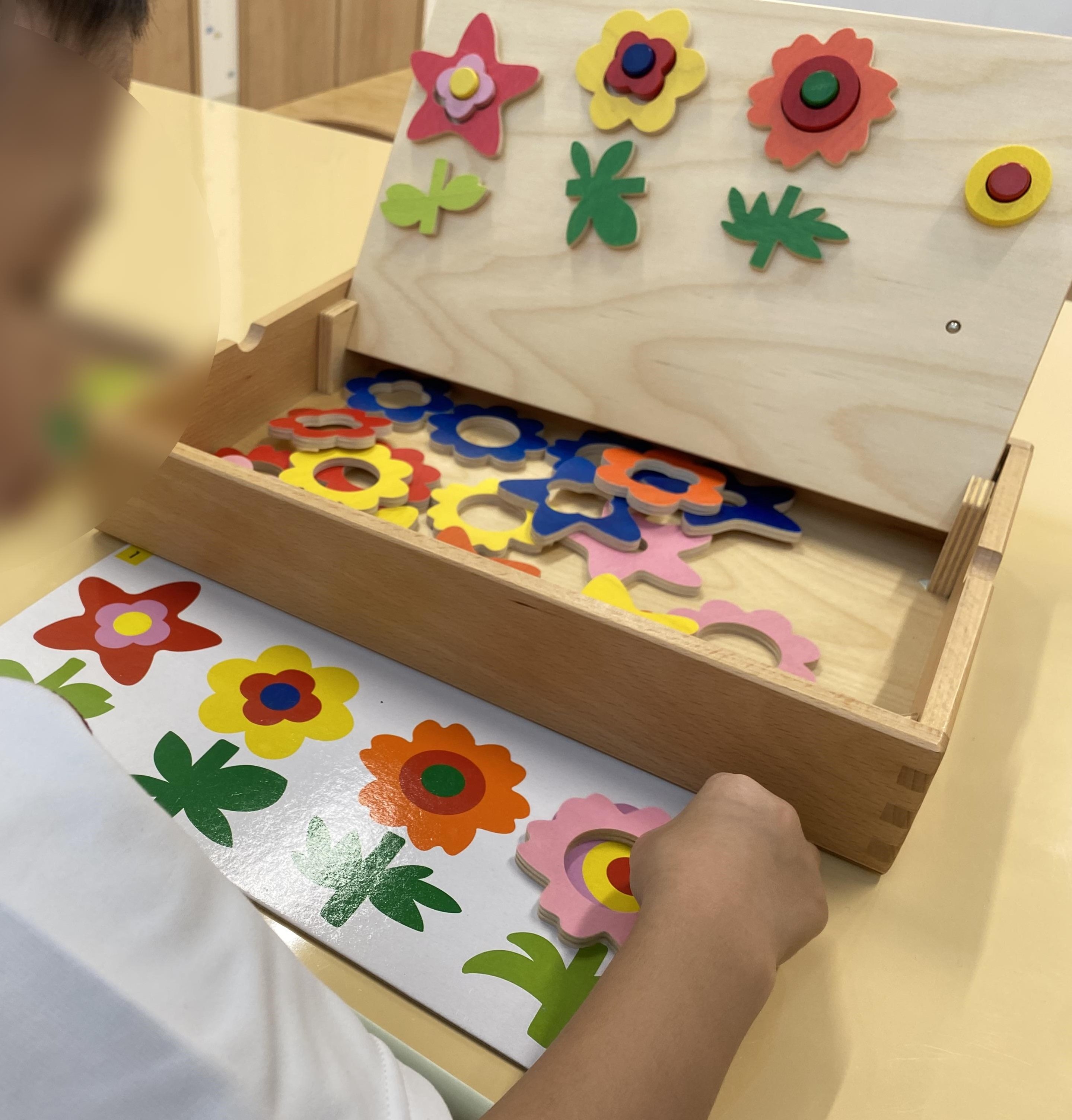 色や形をじっくり見比べながら「お花」を作りました。 たくさん咲いたら、お花屋さんの開店です。