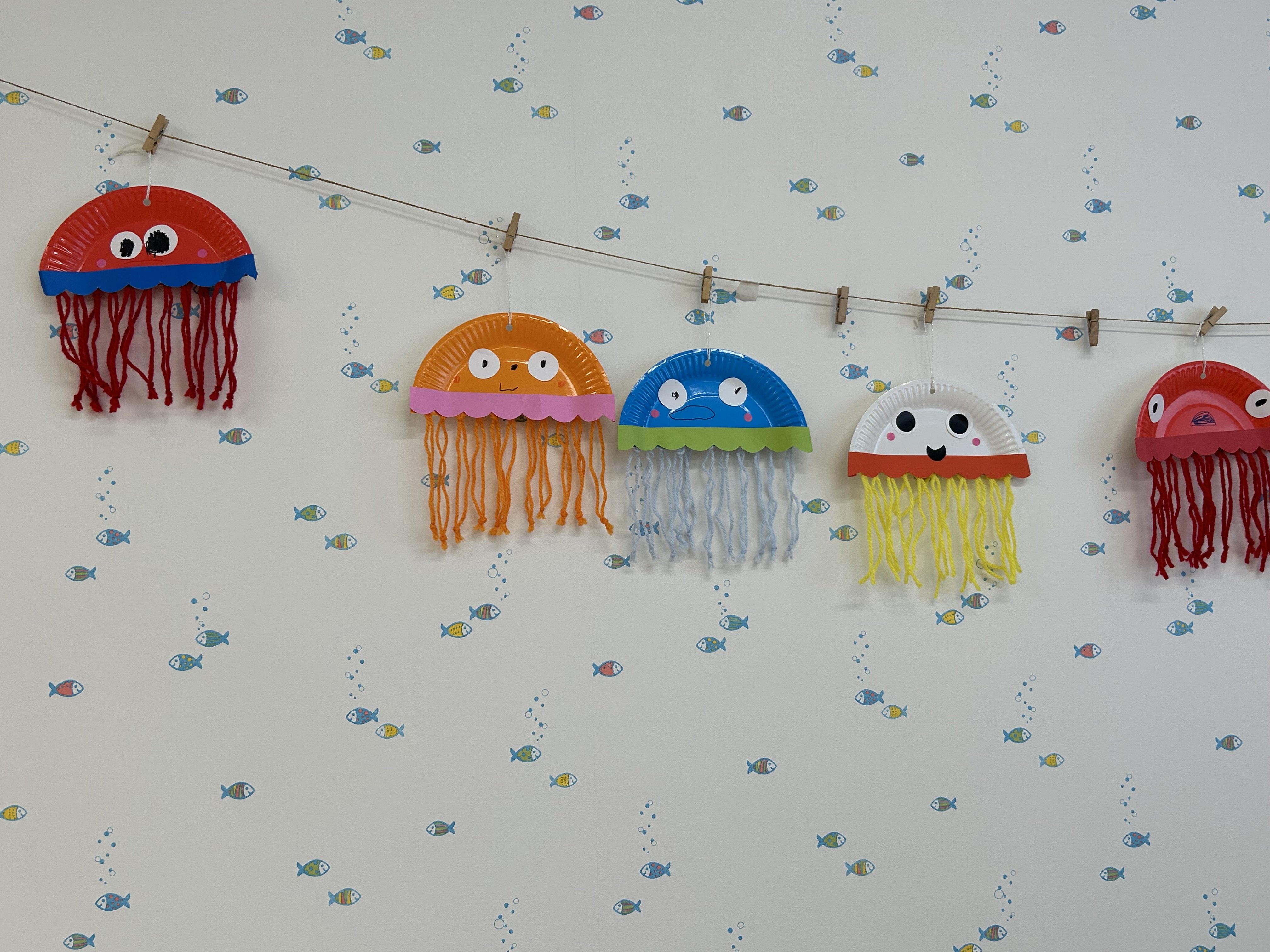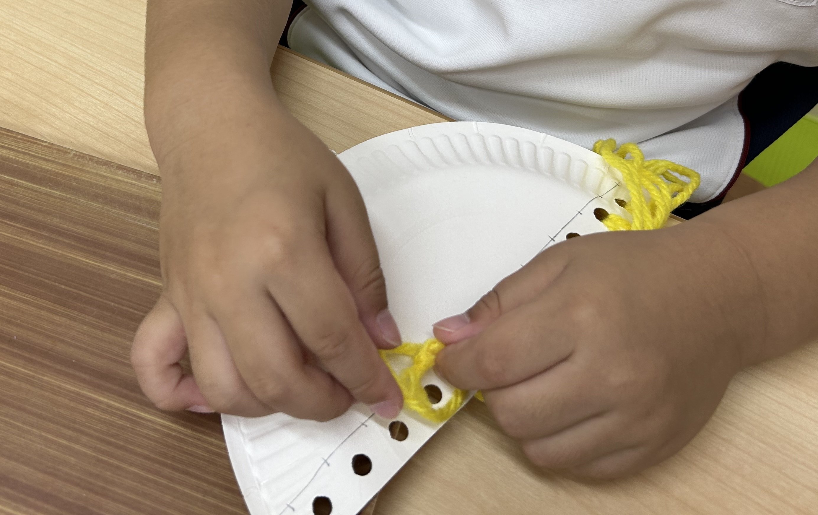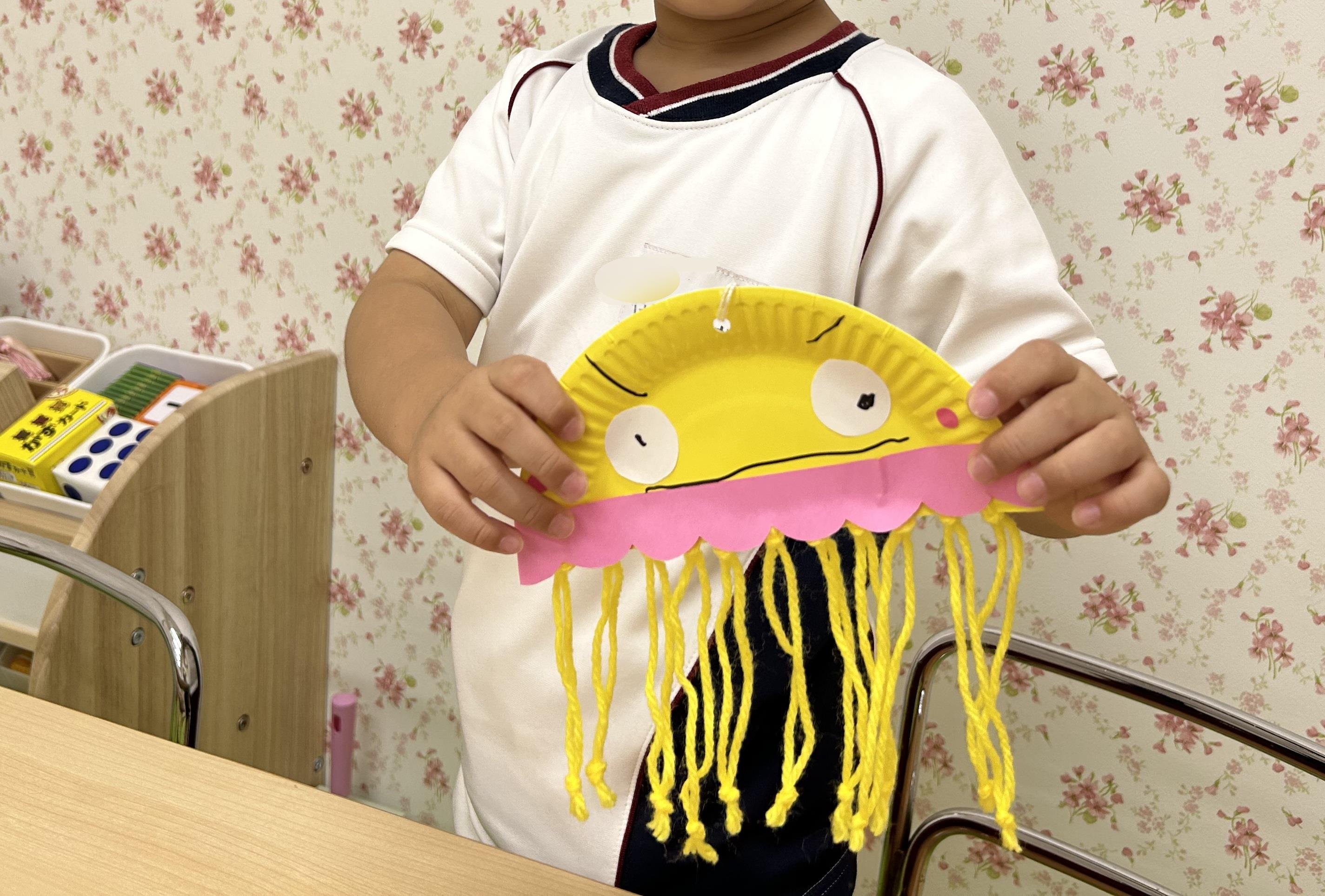 海にちなんだ製作遊びをしました。 穴にひもを通してひっぱる微細運動が中心の製作です。