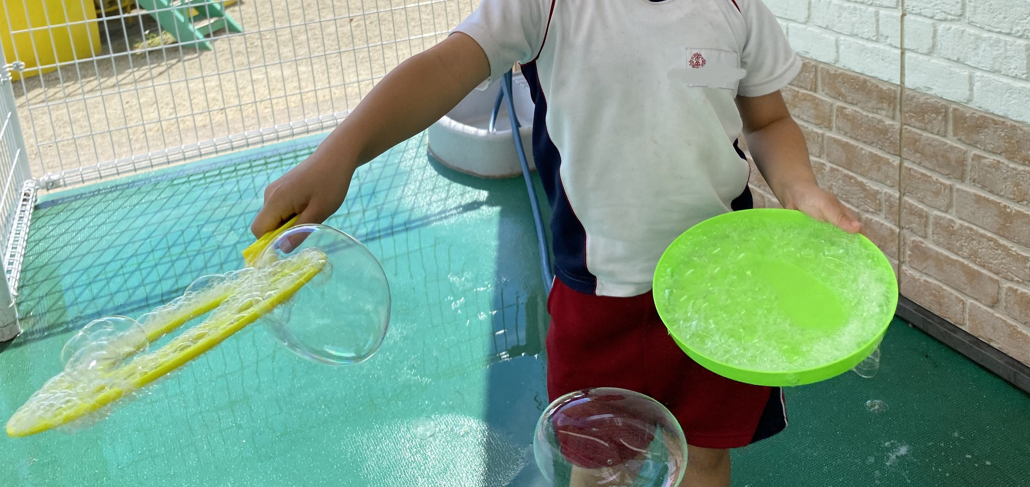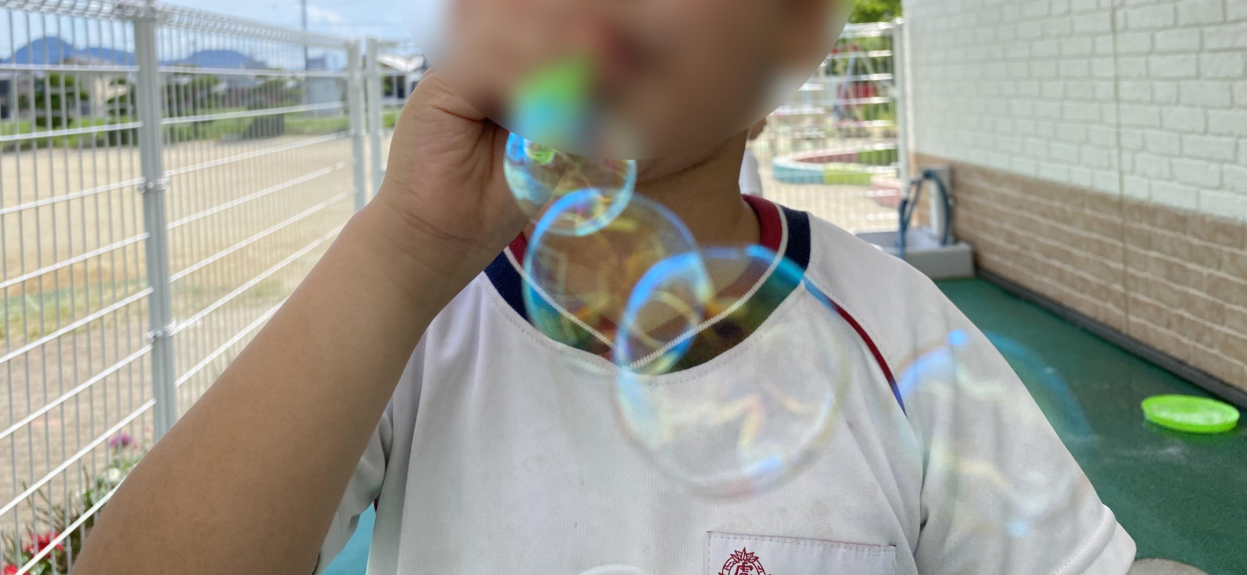 暑い日が続いています。 7月後半は、しゃぼんだま遊びを取り入れています。