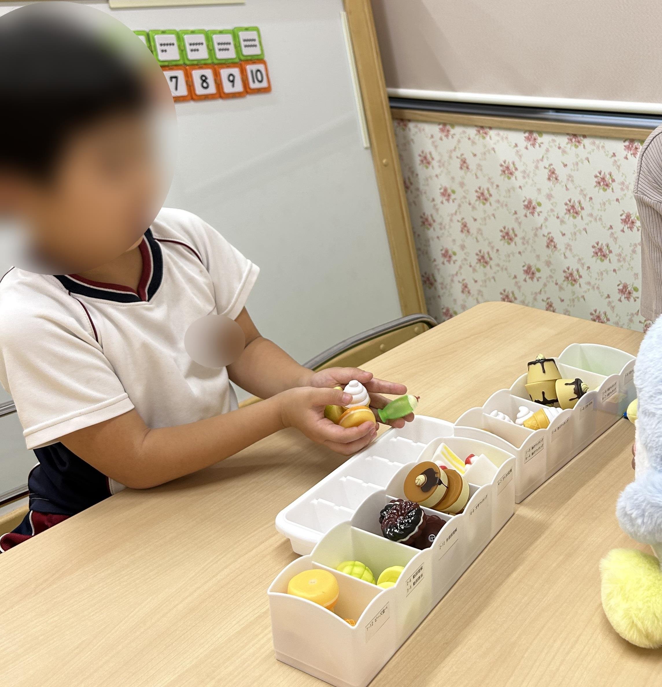 かずあそび ~おみせやさんごっこ~ 2023年08月25日(金) ペンギンさんがケーキ屋さんに買い物に行きました。 よく聞いて、正しい数の品物、箱に入れてくださいね。 クリームソーダ―と、ソフトクリームと・・・