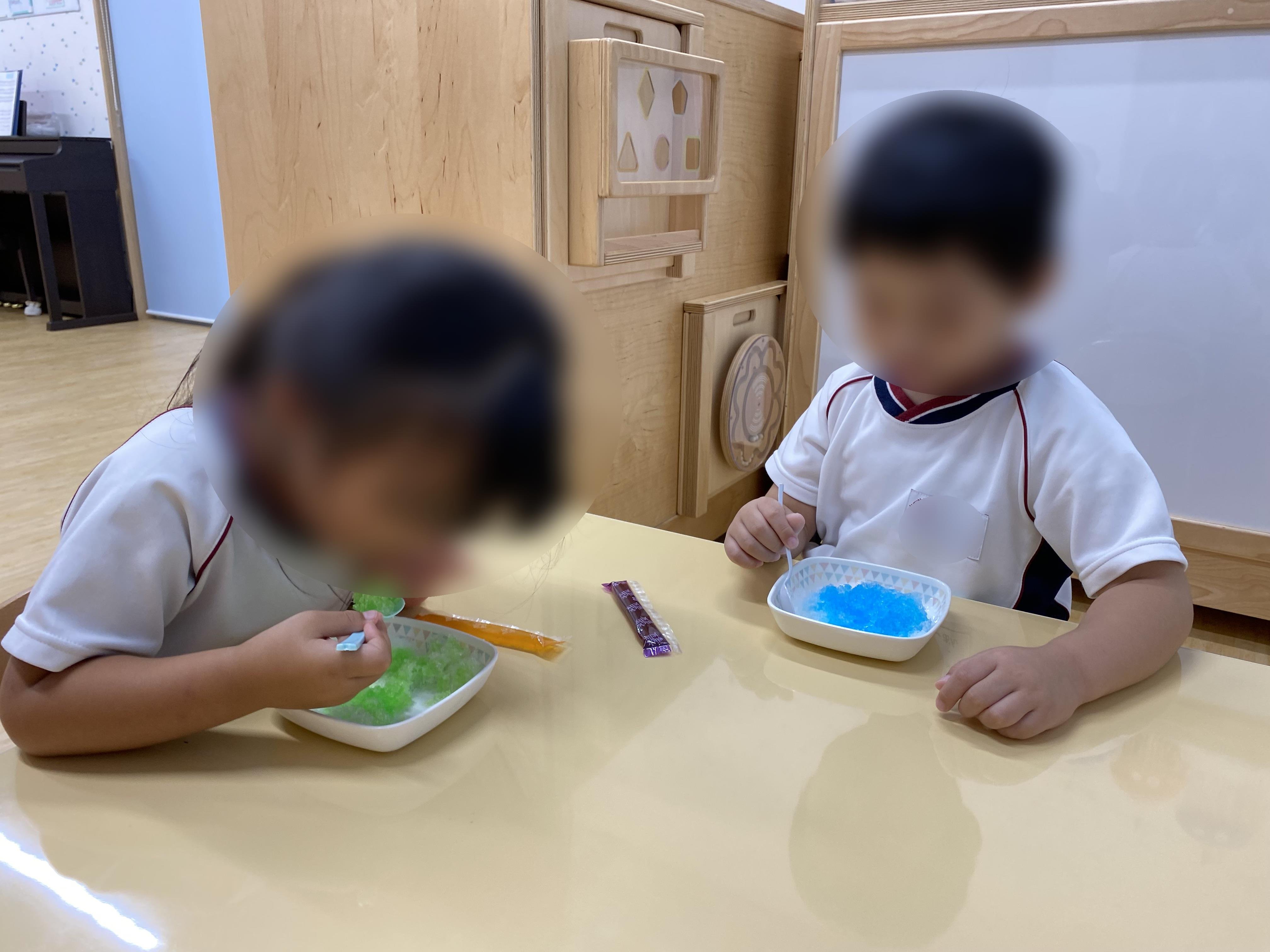 毎年、恒例のかき氷屋さんが開店しました。 カリカリしゃかしゃか、おいしい氷。 冷たくておいしいね!