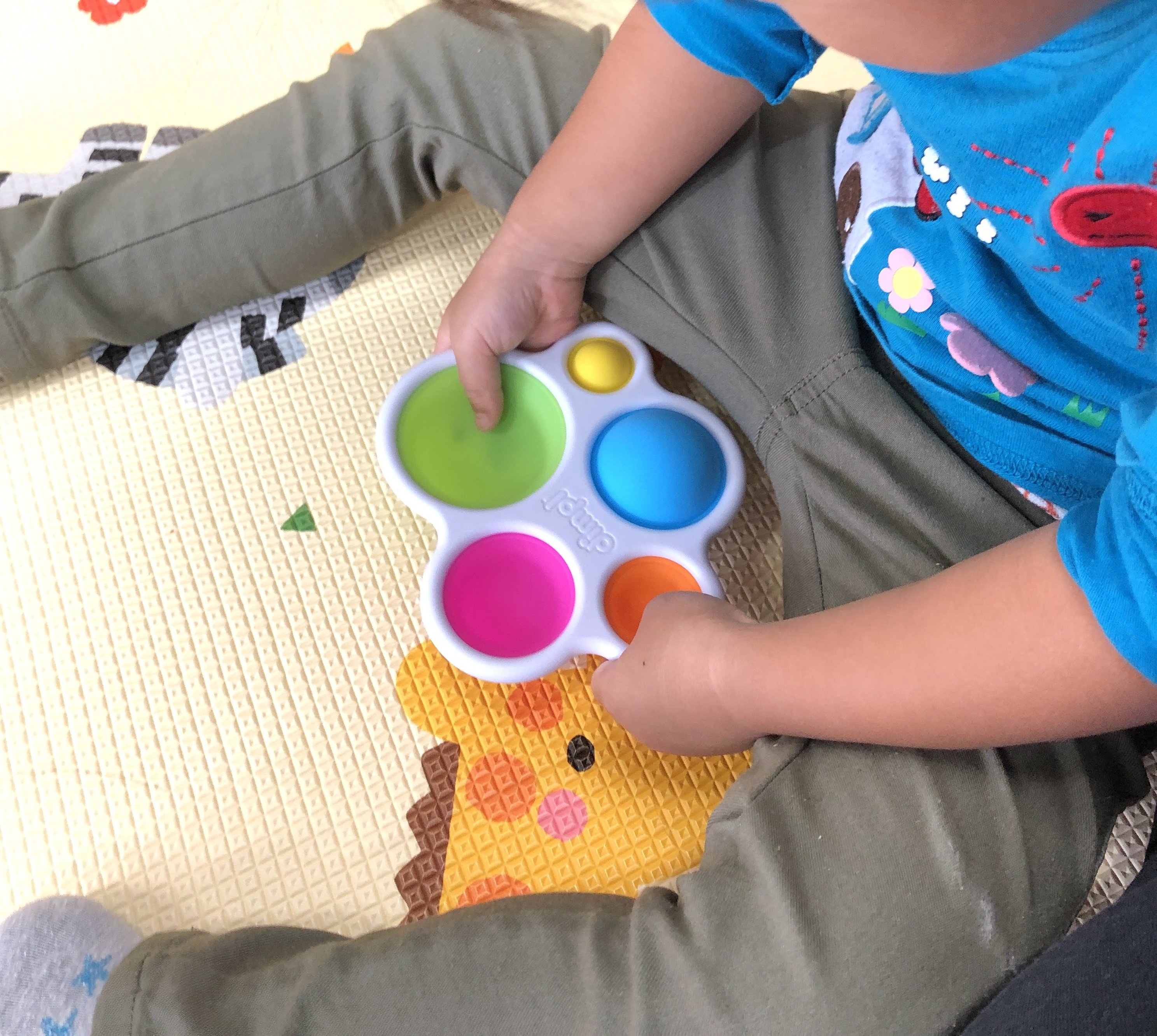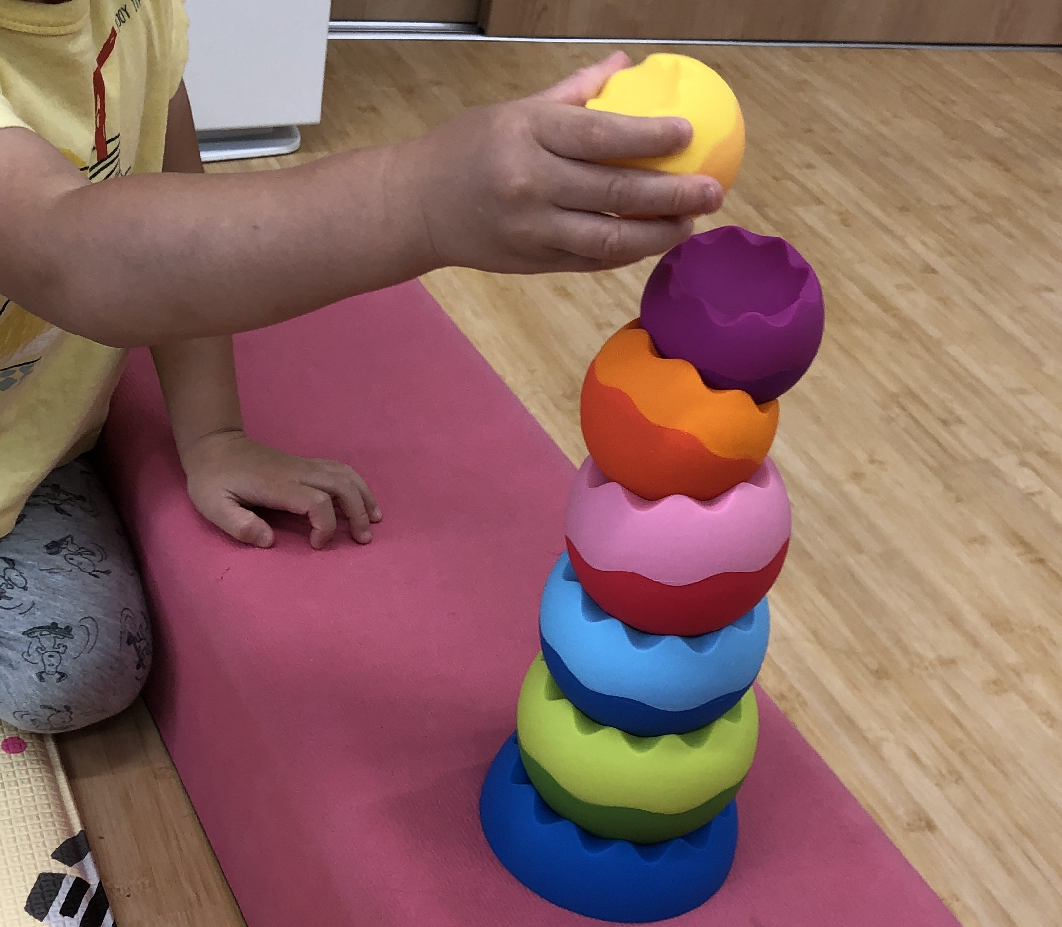 支援センターに新しい教具が入りました。 プチプチ感覚を楽しんだり、見通しをもって重ねる試行錯誤を繰り返したり、子どもたちは夢中です。
