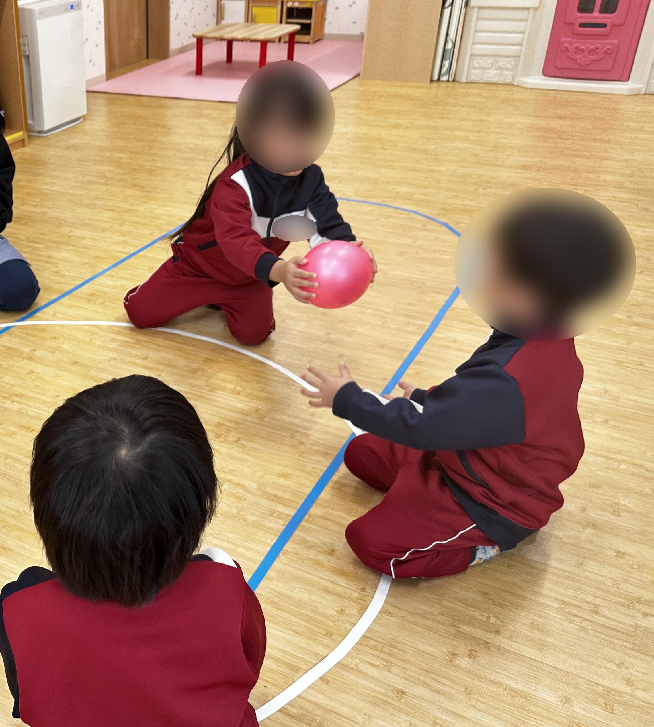 どんぐりを題材に、いろいろな身体の動きを楽しんでいます。