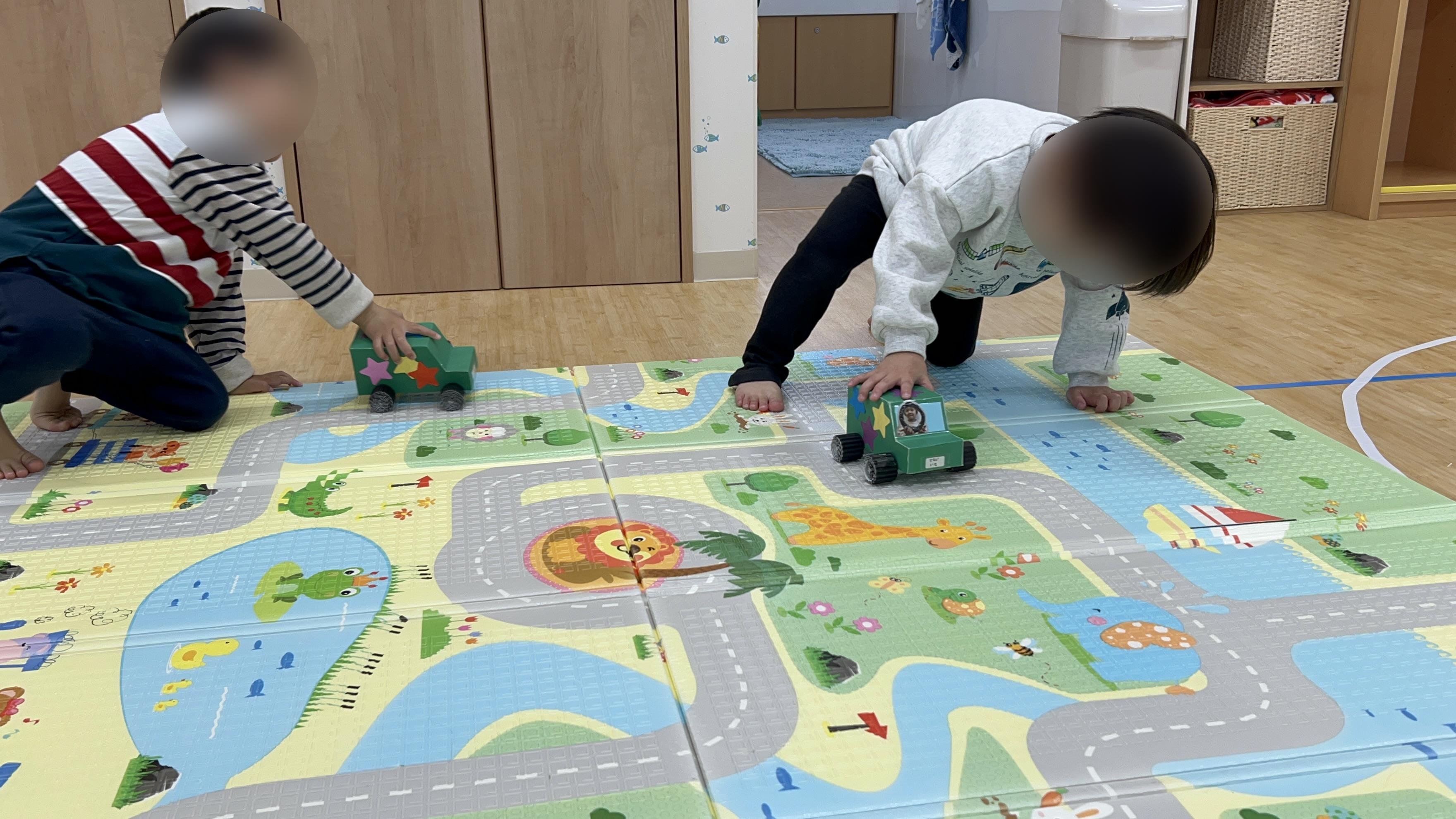 手作りの車を使って、いろいろな走らせ方をしてみました。