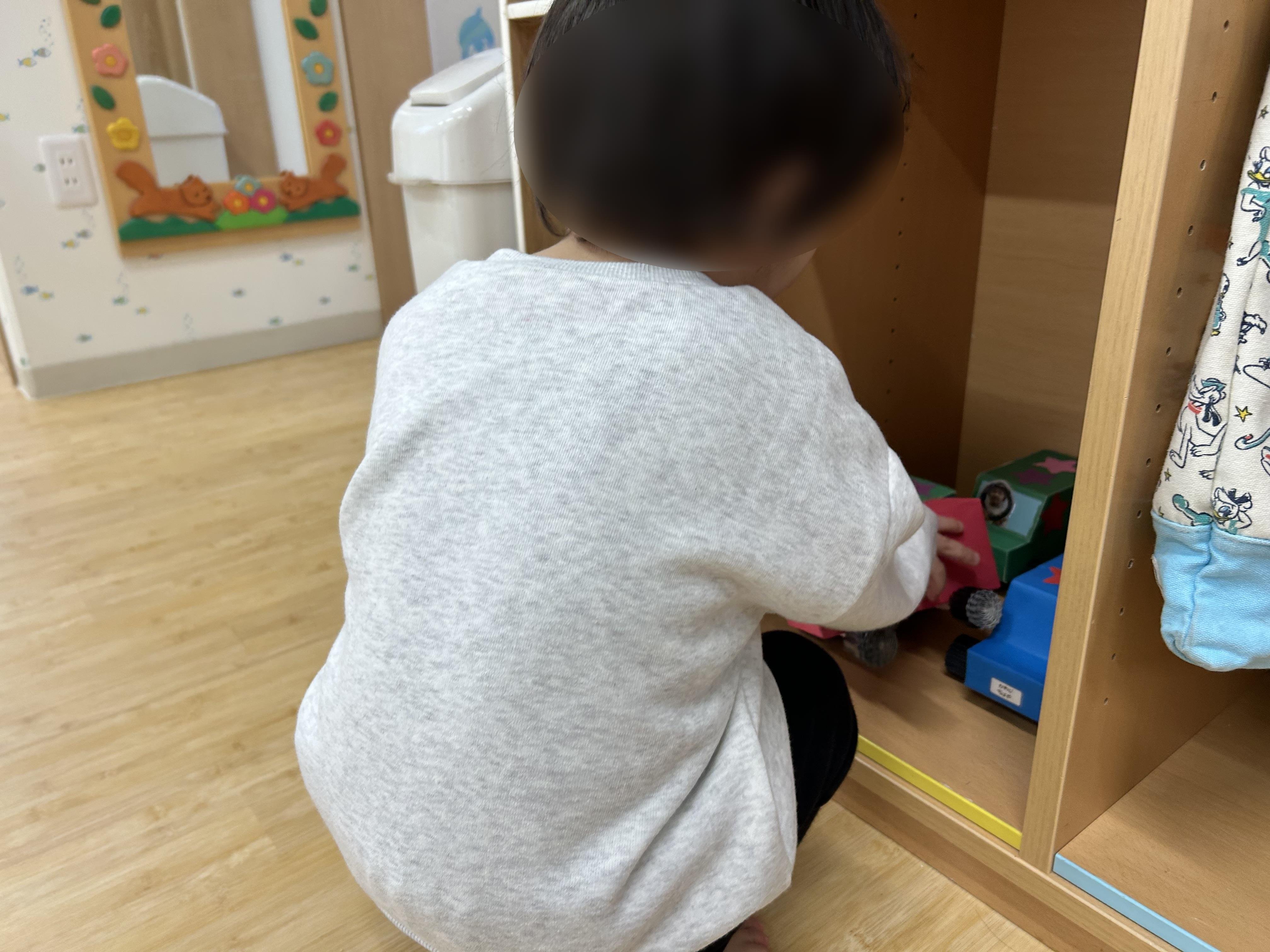 車で遊んでいたお友達、何を見つけたのかな・・・。